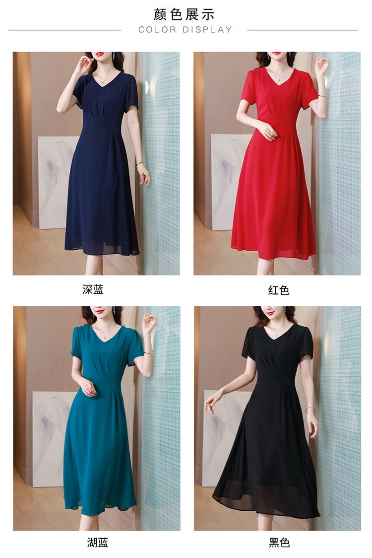 어머니의 날 여름 실크 원피스 여성 플러스 사이즈 패션 뽕나무 실크 V 넥 슬림 핏 미디 원피스스토어 가기