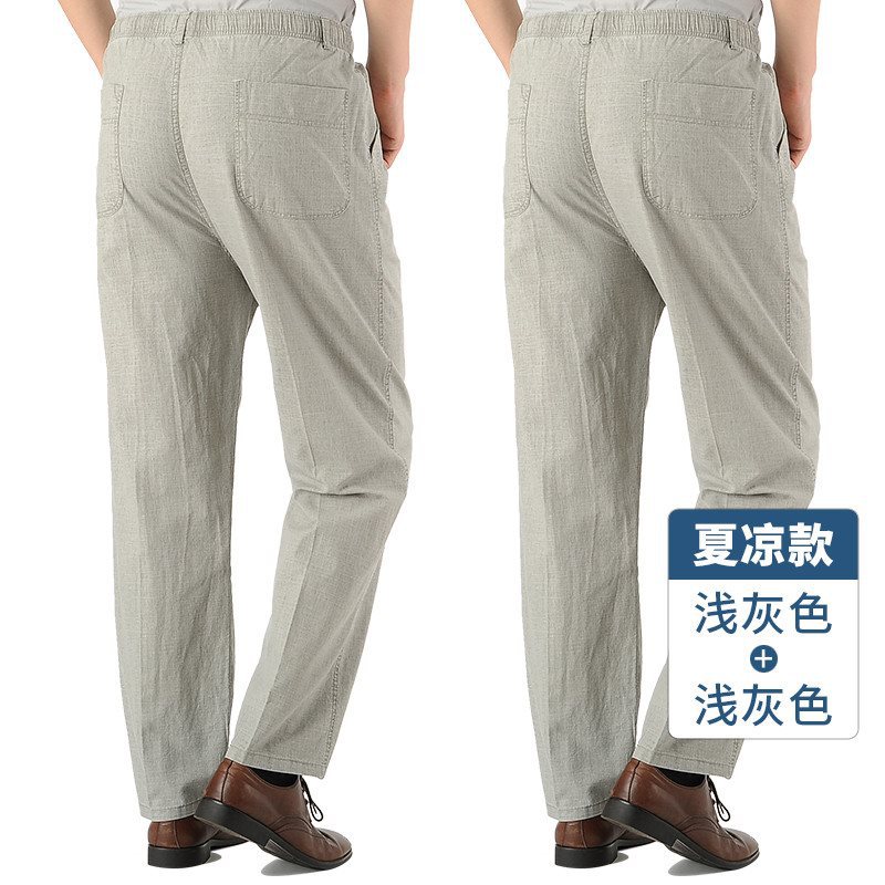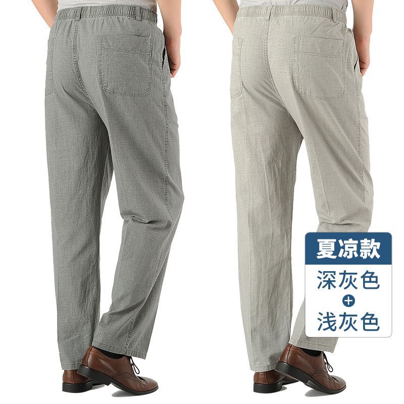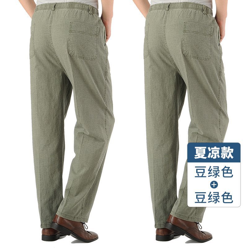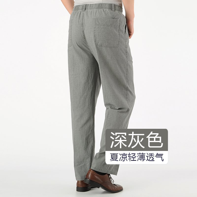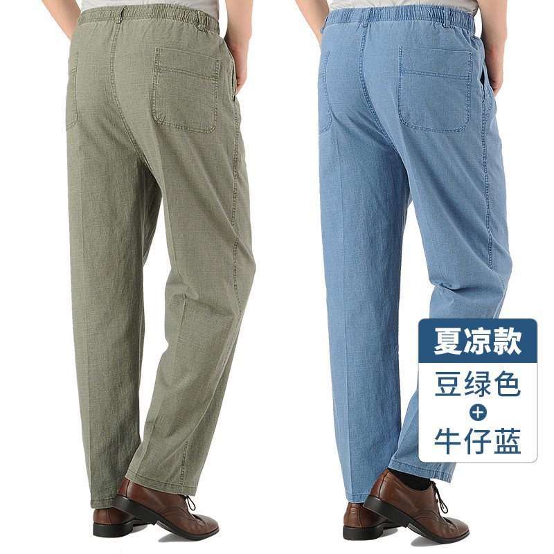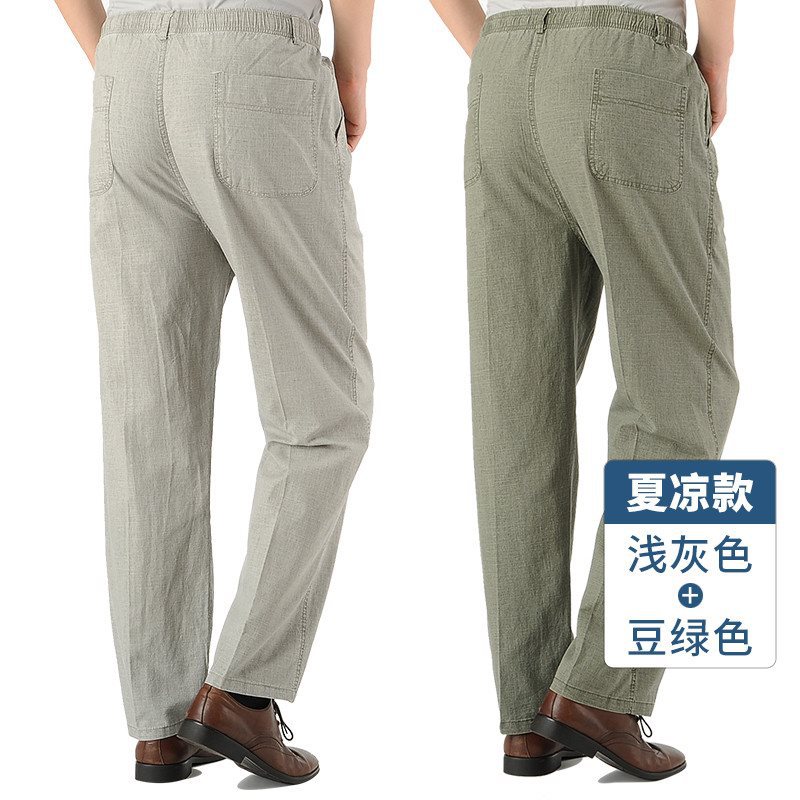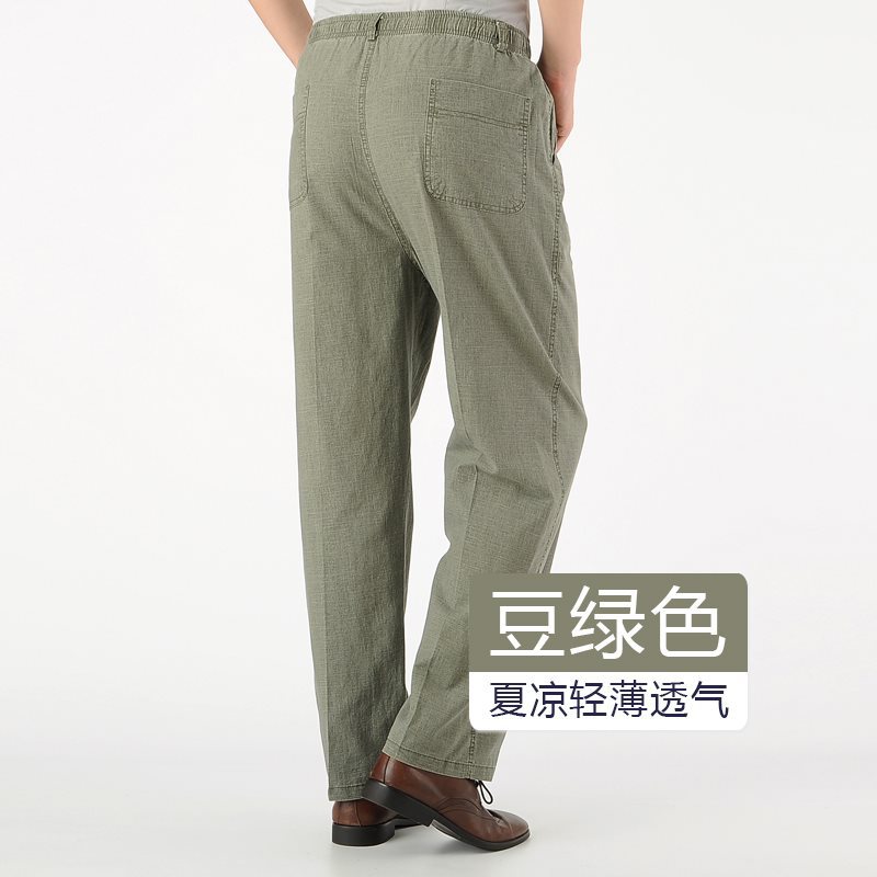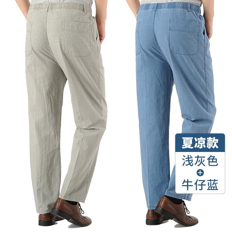 여름 아빠의 신축성있는 허리 바지 중년 및 노인 코튼 린넨 느슨한 얇은 40 세 50 린넨 캐주얼 남성용 바지스토어 가기