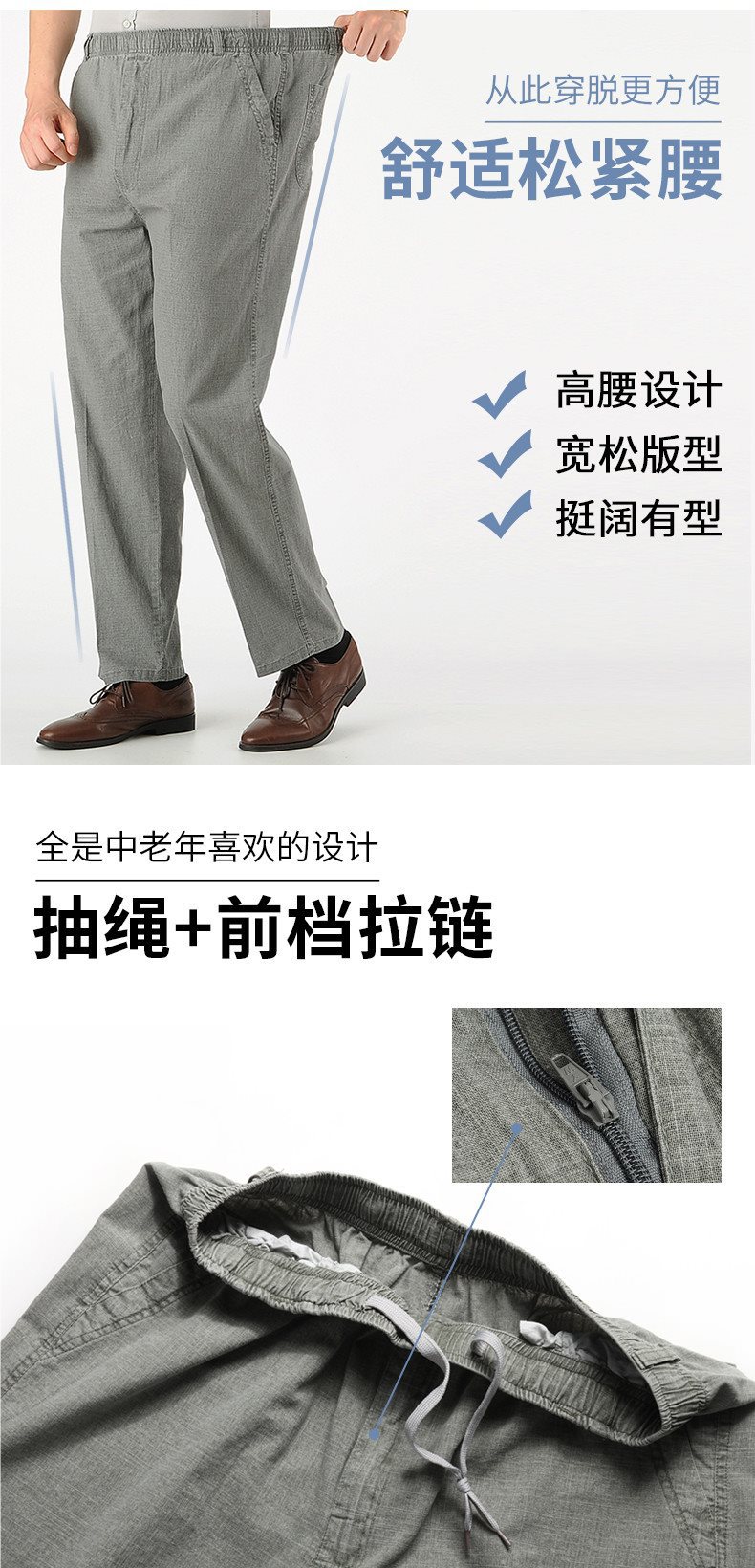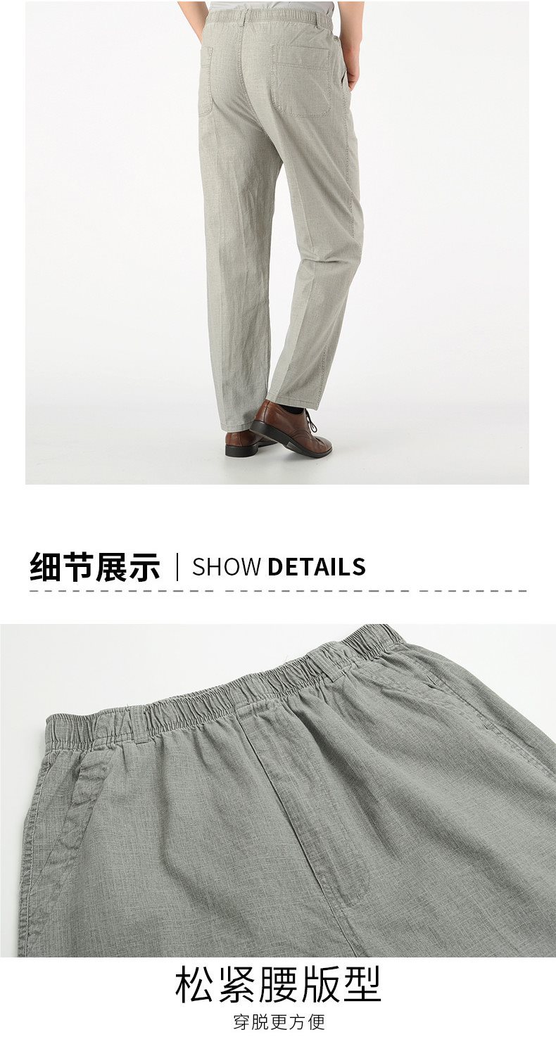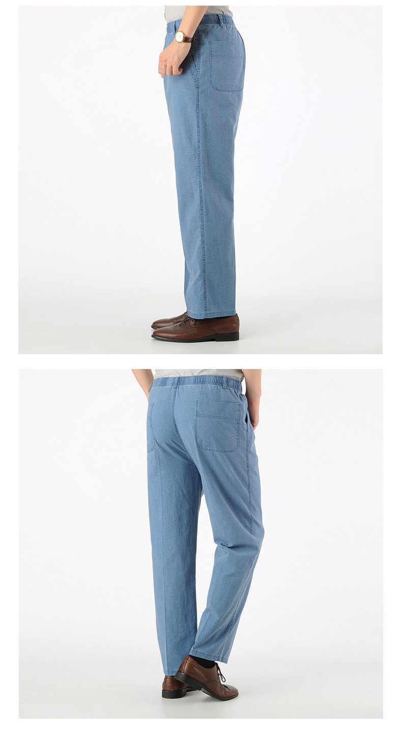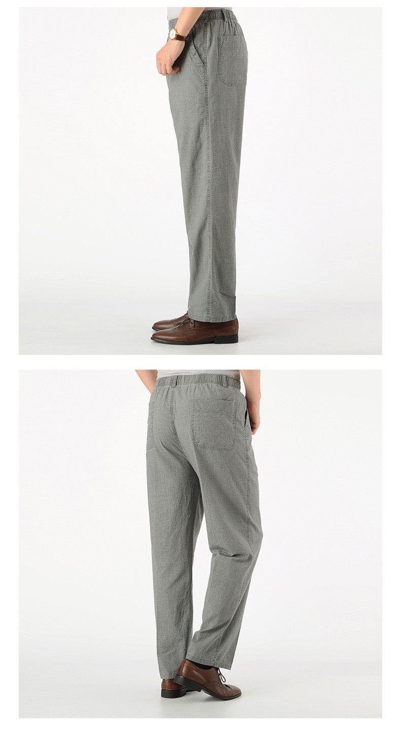 여름 아빠의 신축성있는 허리 바지 중년 및 노인 코튼 린넨 느슨한 얇은 40 세 50 린넨 캐주얼 남성용 바지스토어 가기