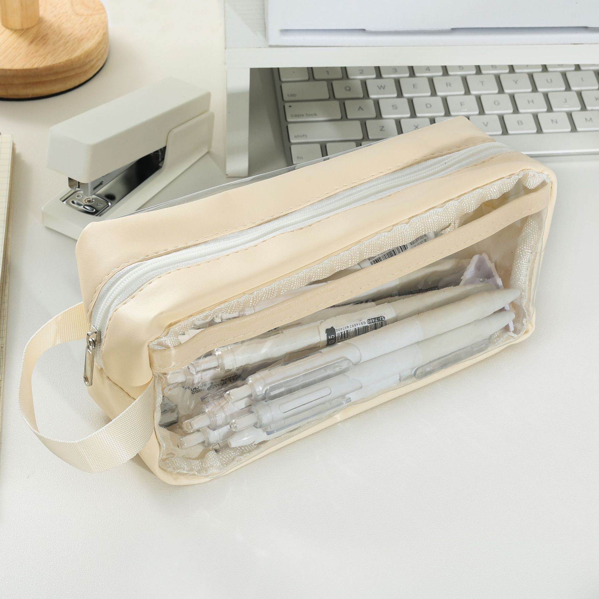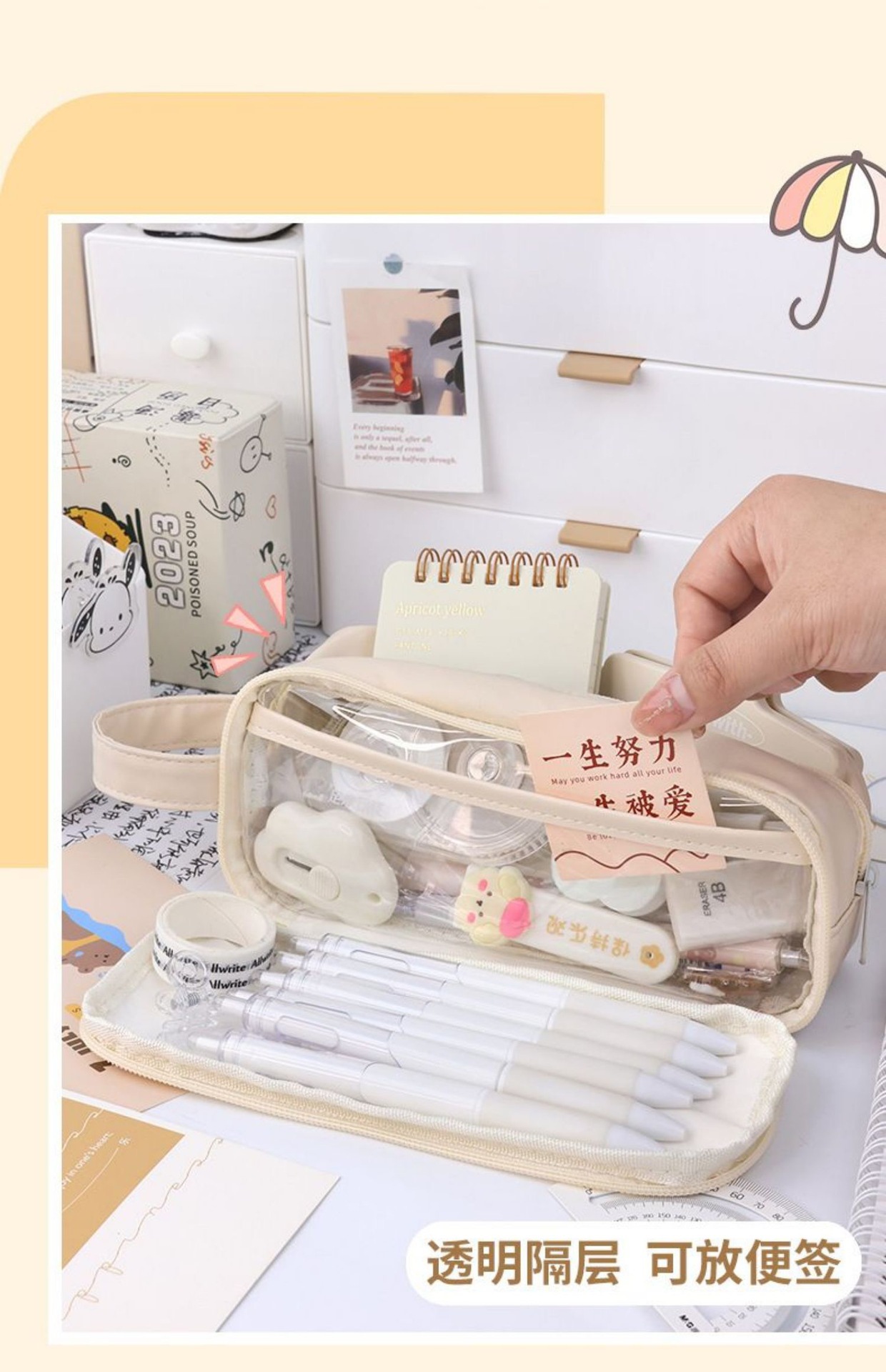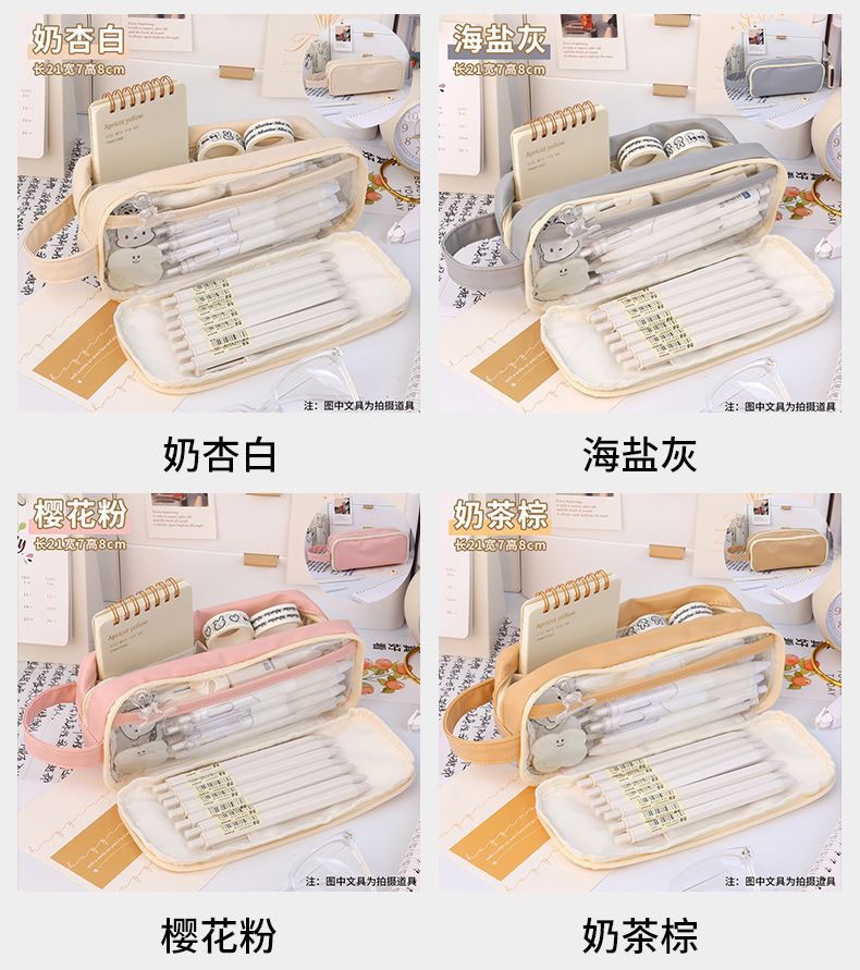 우유 소금 두 배 층 투명한 연필 케이스 Ins 대용량 고색 가치 연필 케이스 주니어 고등학교 학생 저장 연필 문구 상자스토어 가기