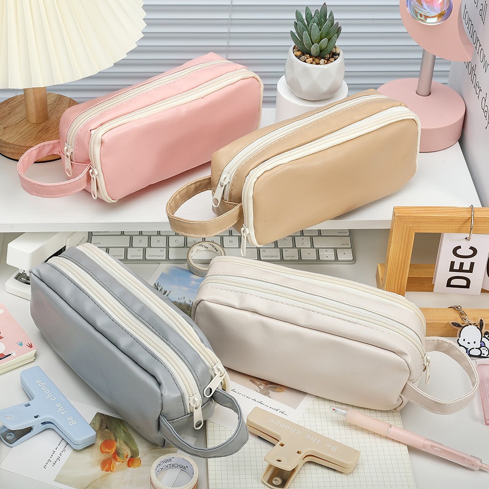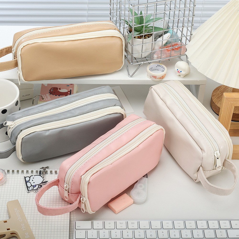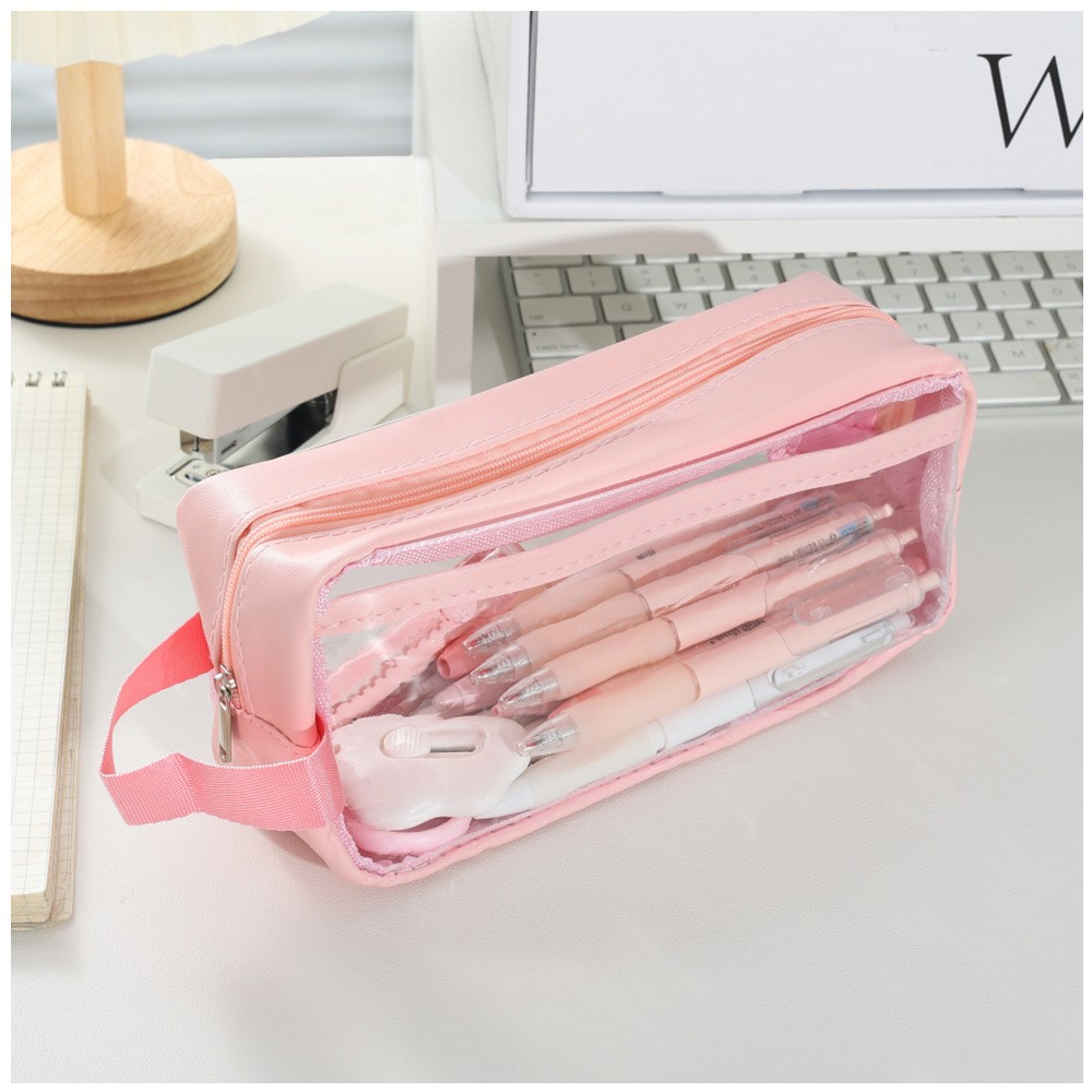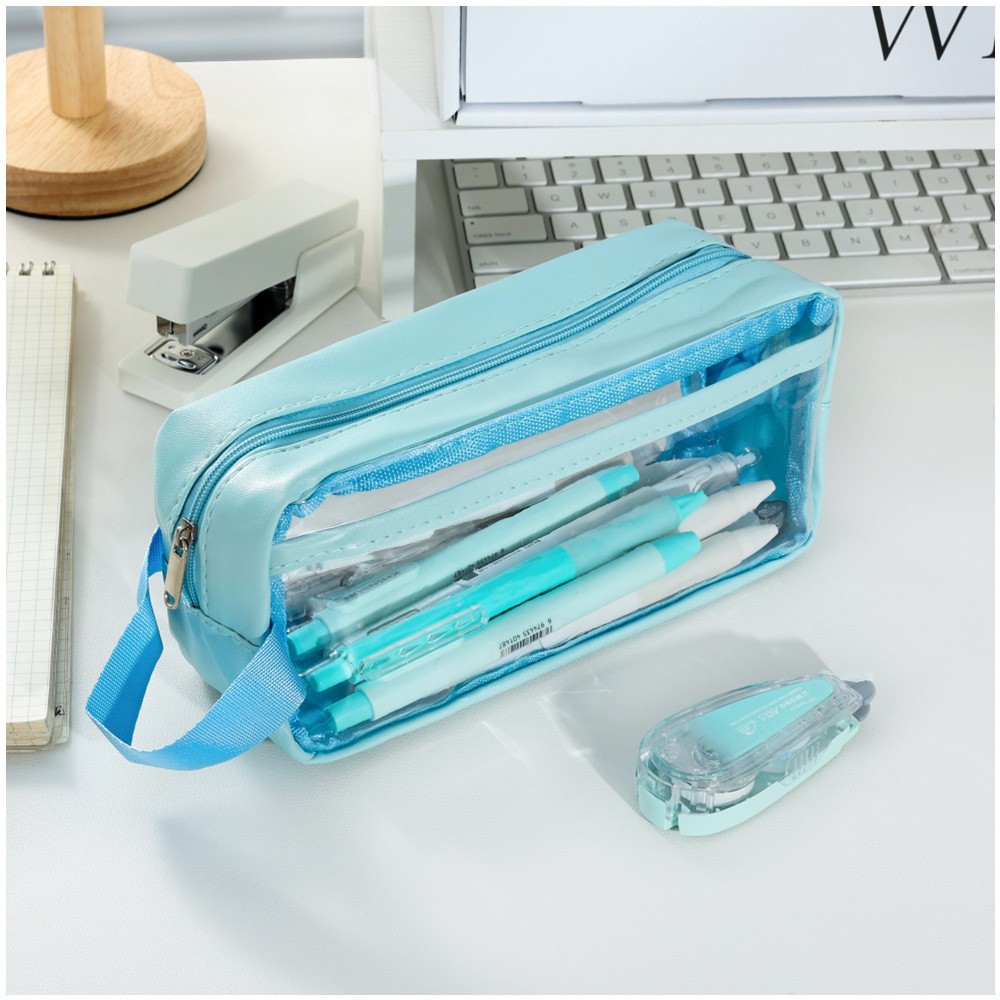 우유 소금 두 배 층 투명한 연필 케이스 Ins 대용량 고색 가치 연필 케이스 주니어 고등학교 학생 저장 연필 문구 상자스토어 가기