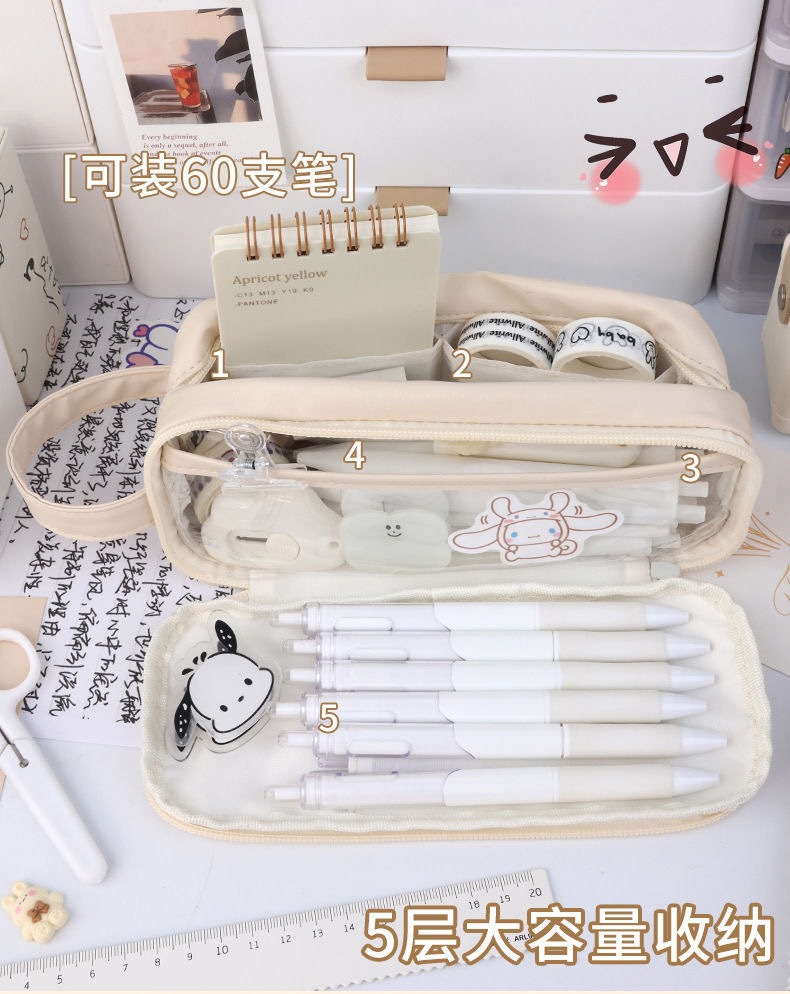 우유 소금 두 배 층 투명한 연필 케이스 Ins 대용량 고색 가치 연필 케이스 주니어 고등학교 학생 저장 연필 문구 상자