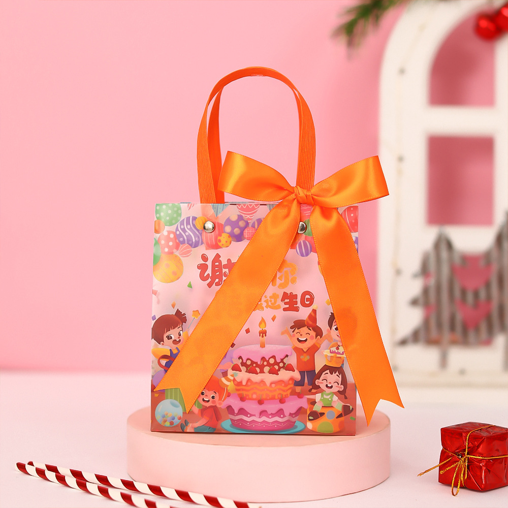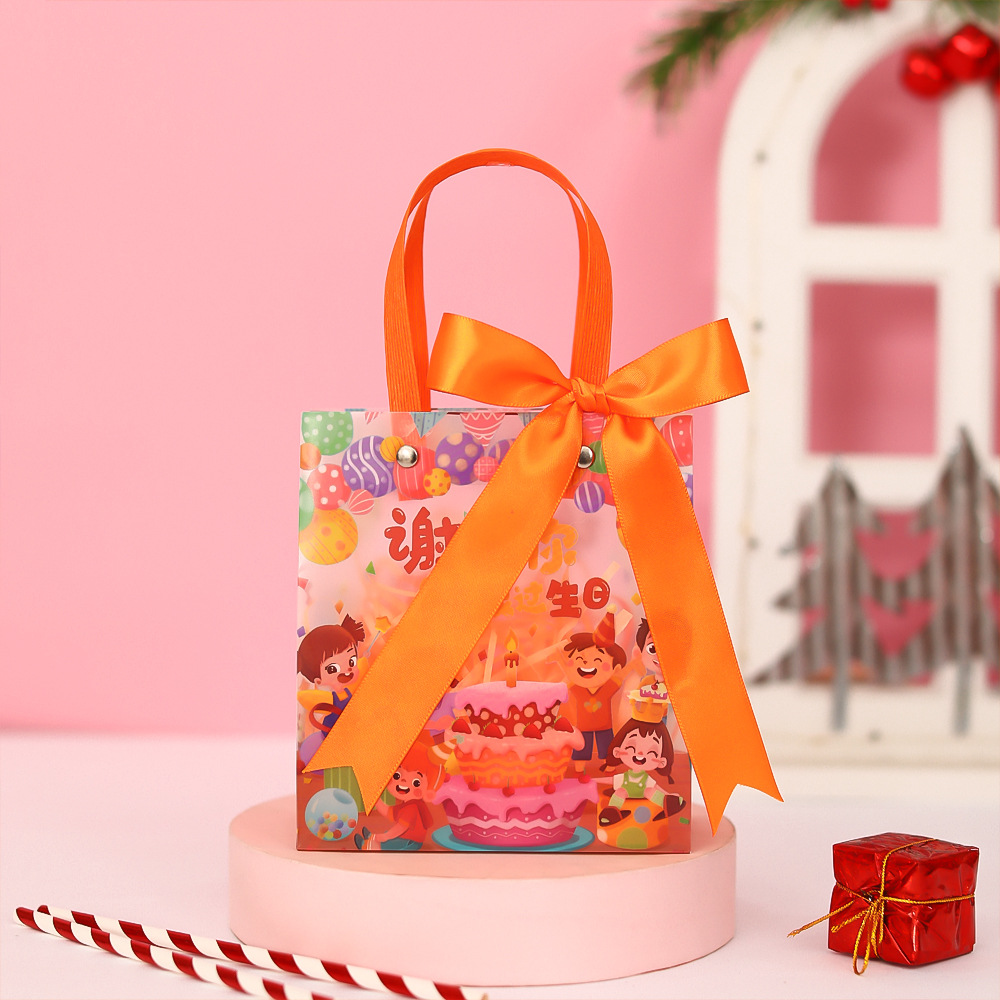• 노란색 생일 선물 가방 + 주황색 리본 PP, 중간 크기 17.5*8.5*20cm