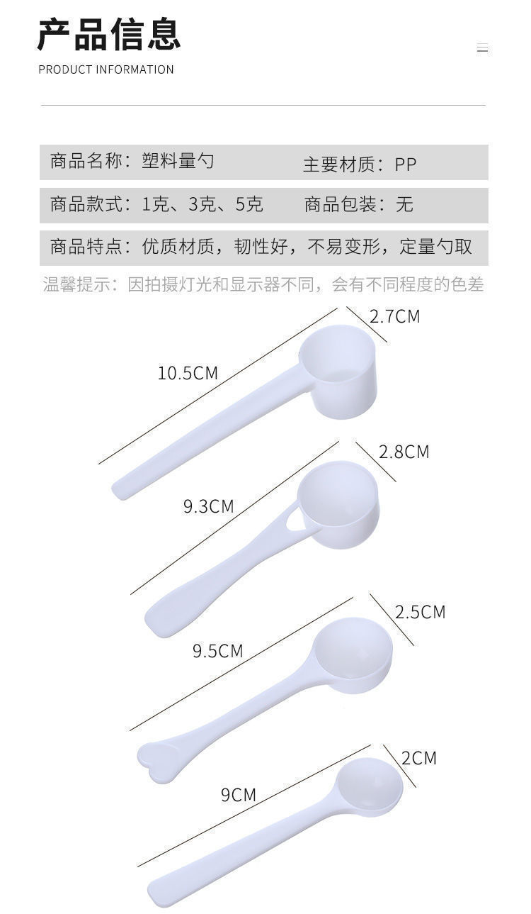 플라스틱 측정 숟가락 Sanqi 분말 숟가락 12351015/g 우유 분말 숟가락 플라스틱 숟가락 도매 공장 원피스 도매스토어 가기
