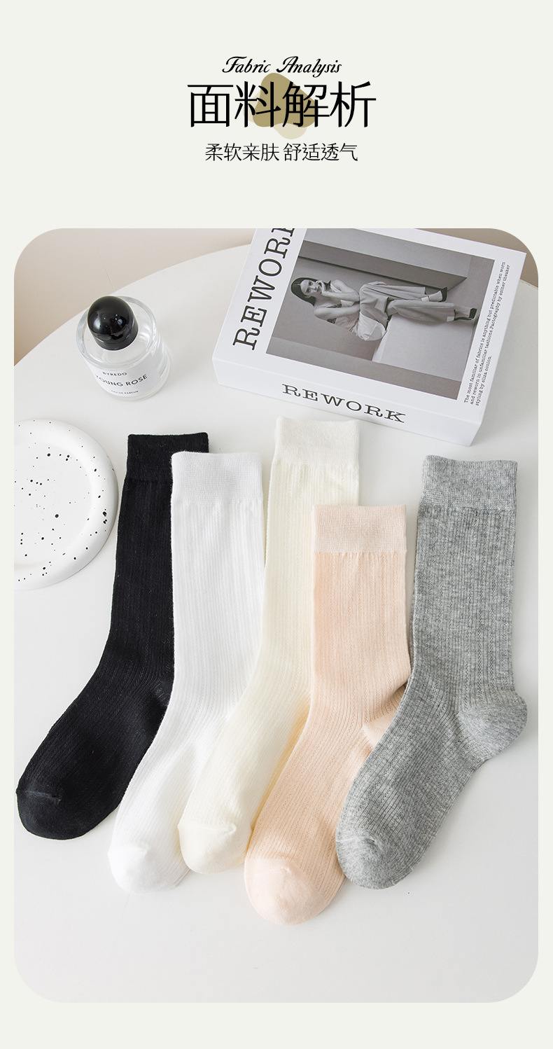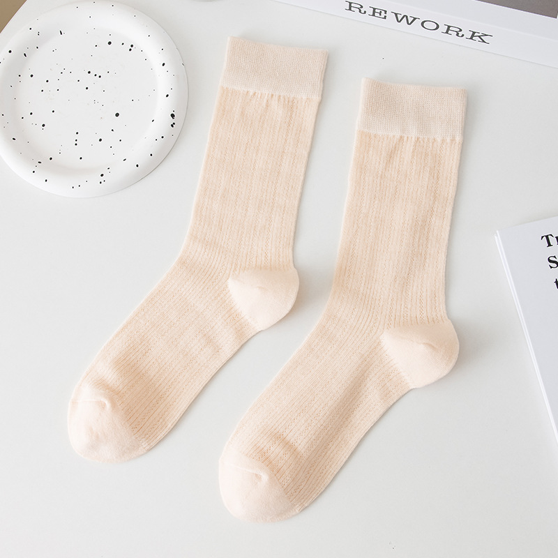 별도의 포장 양말 여성 여름 MIU 스타일 얇은 면 수직 스트립 할로우 솔리드 컬러 JK 일본 스타일 미드 하이 스택 양말