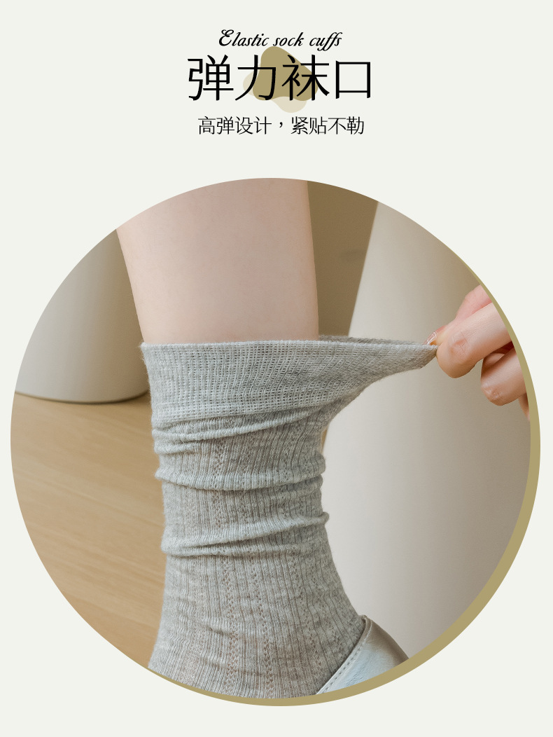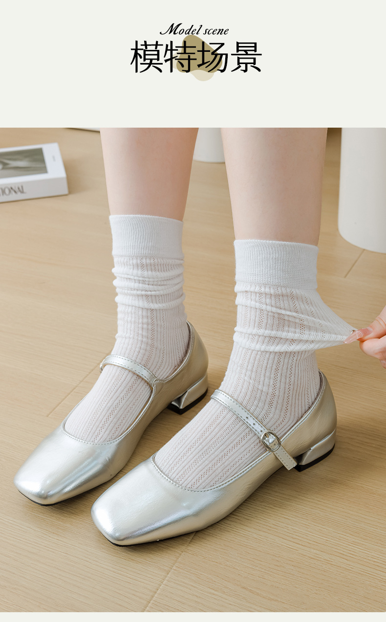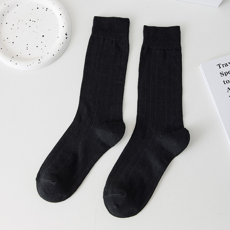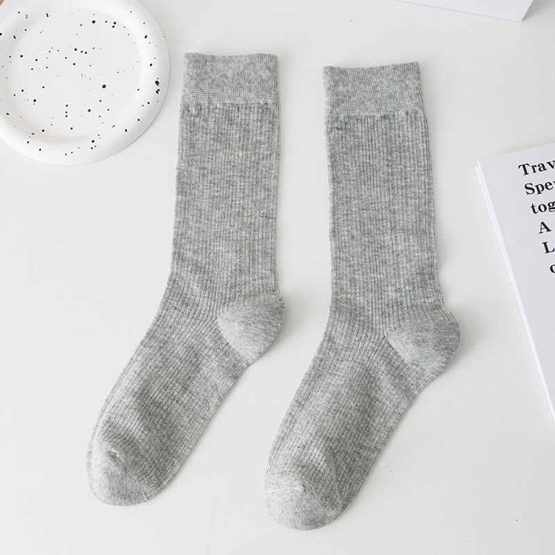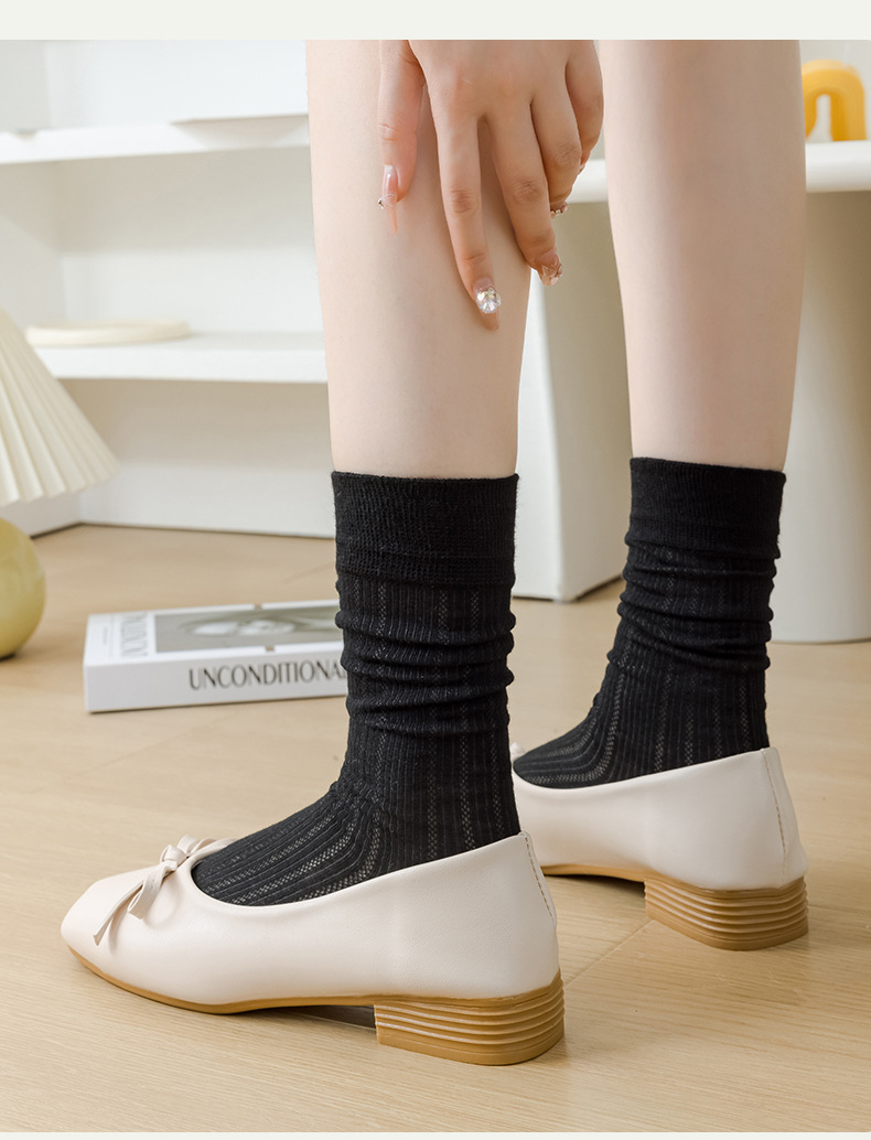 별도의 포장 양말 여성 여름 MIU 스타일 얇은 면 수직 스트립 할로우 솔리드 컬러 JK 일본 스타일 미드 하이 스택 양말스토어 가기