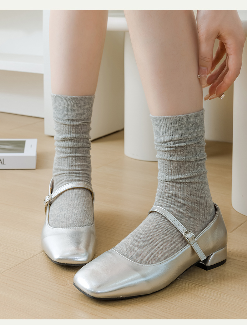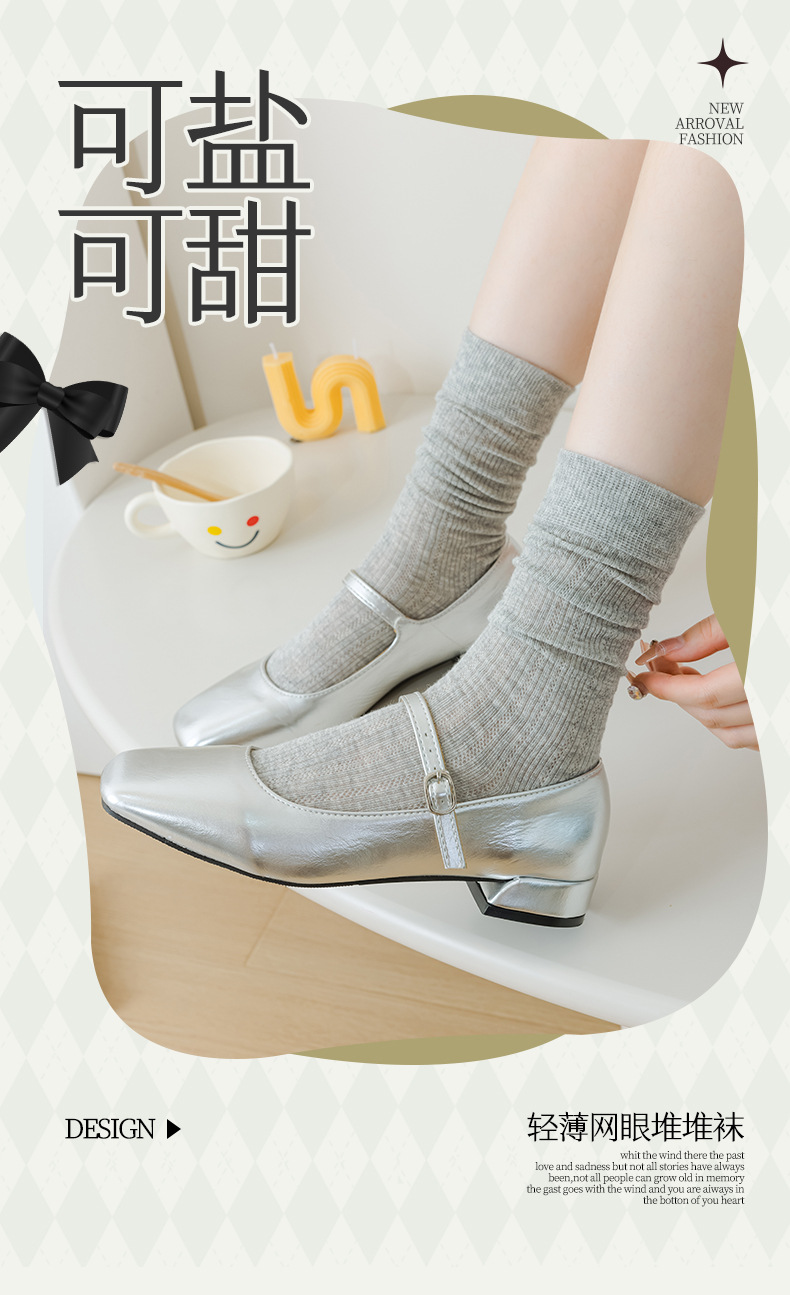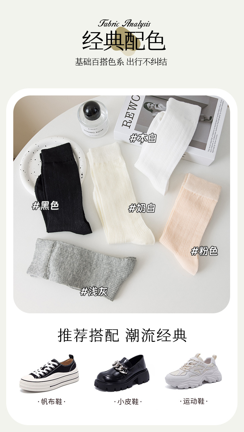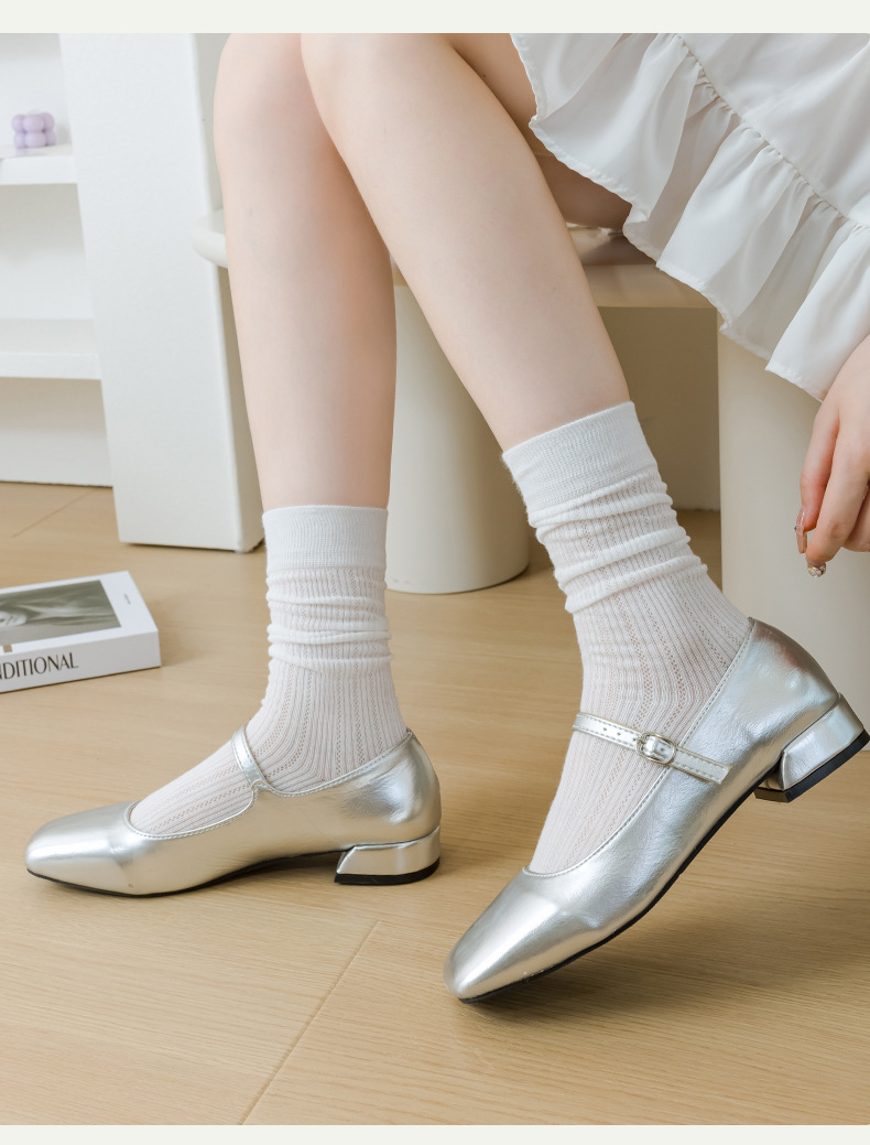 별도의 포장 양말 여성 여름 MIU 스타일 얇은 면 수직 스트립 할로우 솔리드 컬러 JK 일본 스타일 미드 하이 스택 양말스토어 가기