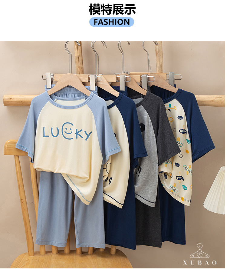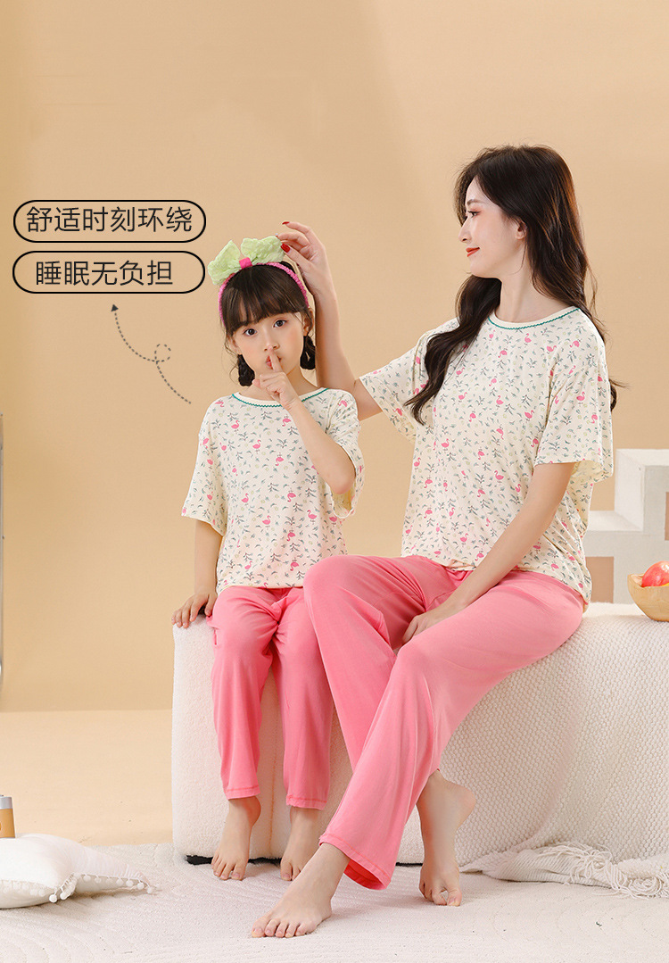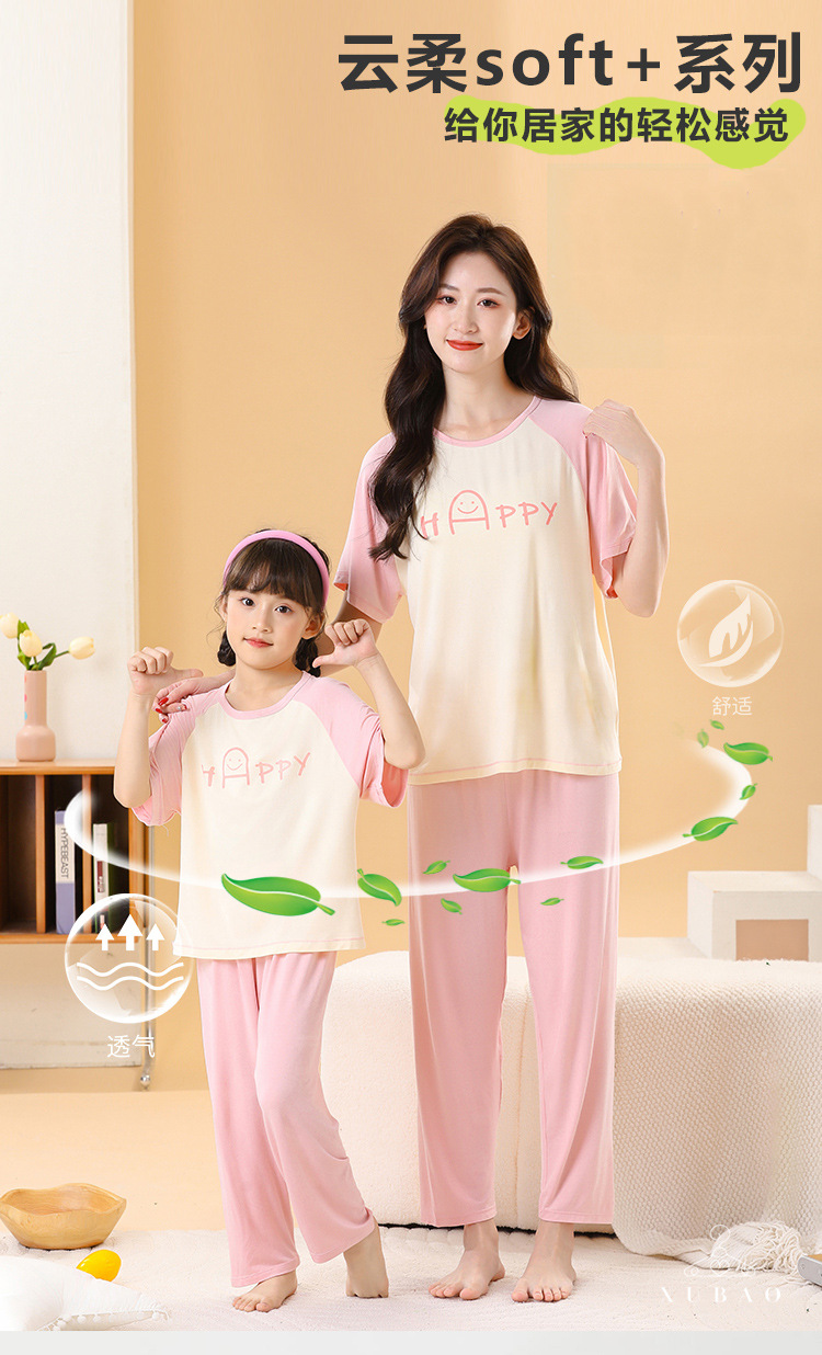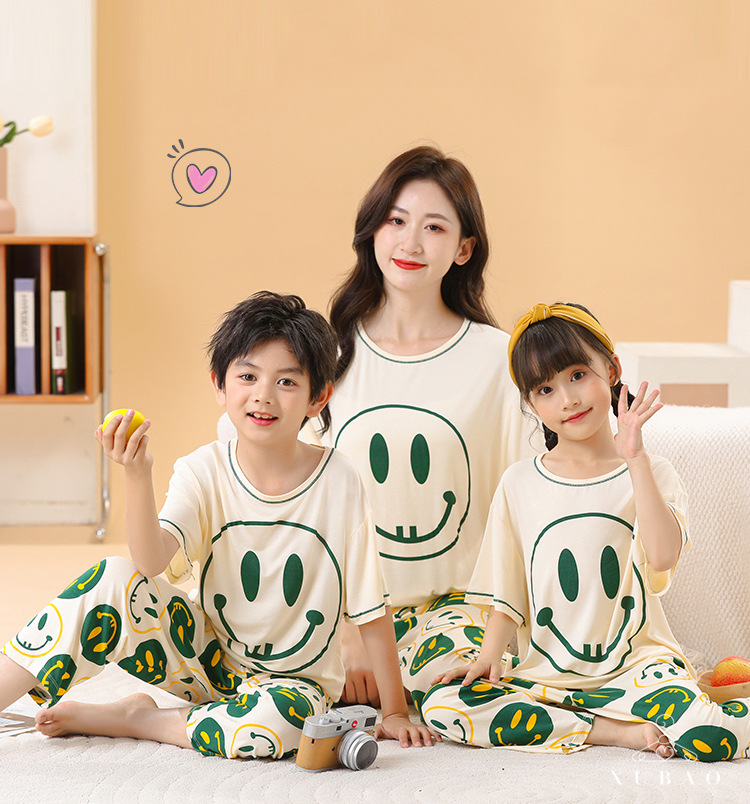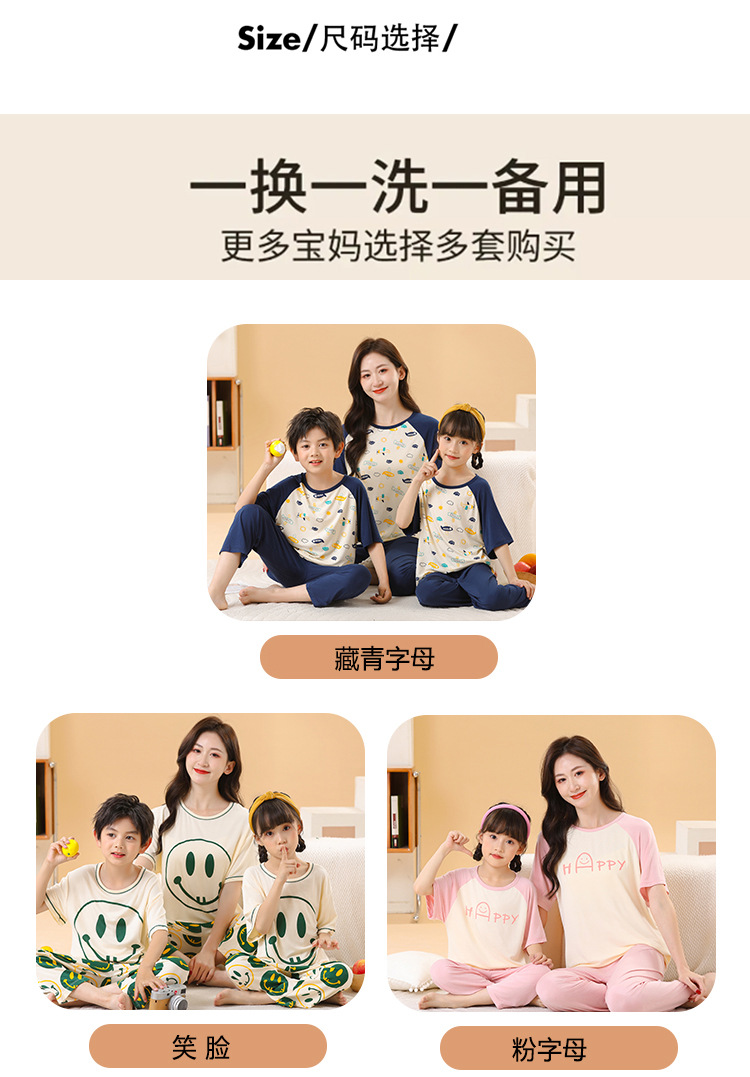 2025 여름 부모-자녀 가족 옷 소년과 소녀 귀여운 만화 반팔 바지 에어컨 홈 옷 파자마 투피스 세트스토어 가기