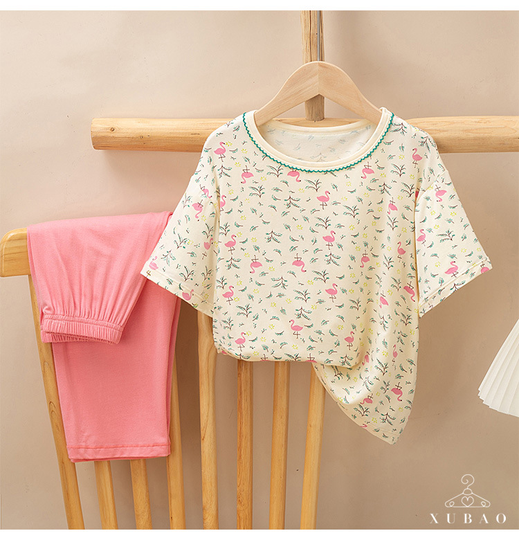 2025 여름 부모-자녀 가족 옷 소년과 소녀 귀여운 만화 반팔 바지 에어컨 홈 옷 파자마 투피스 세트