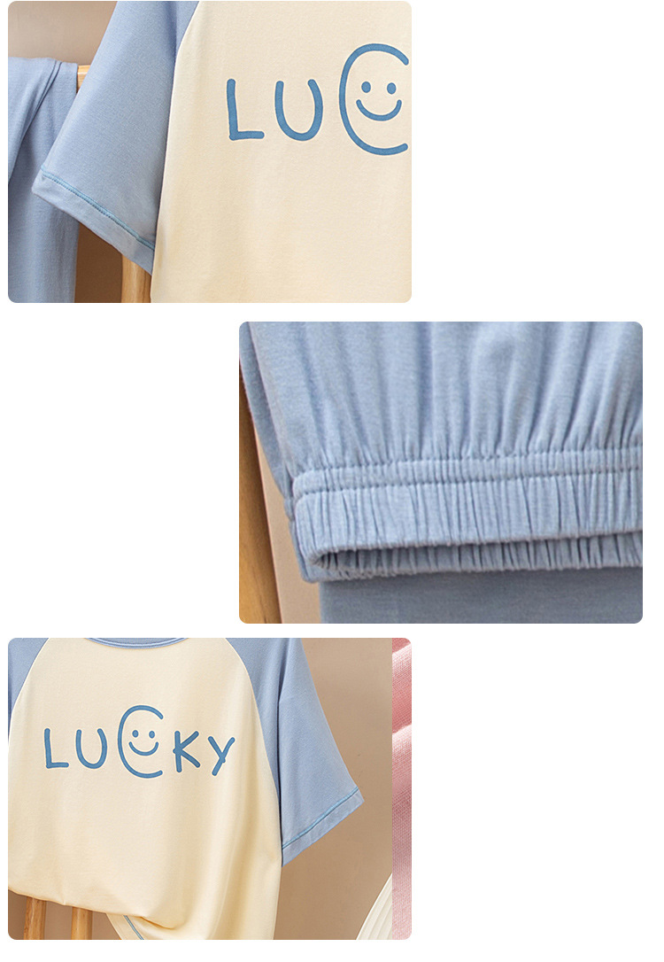 • CHH 홈 웨어-짧은 소매 블루 편지