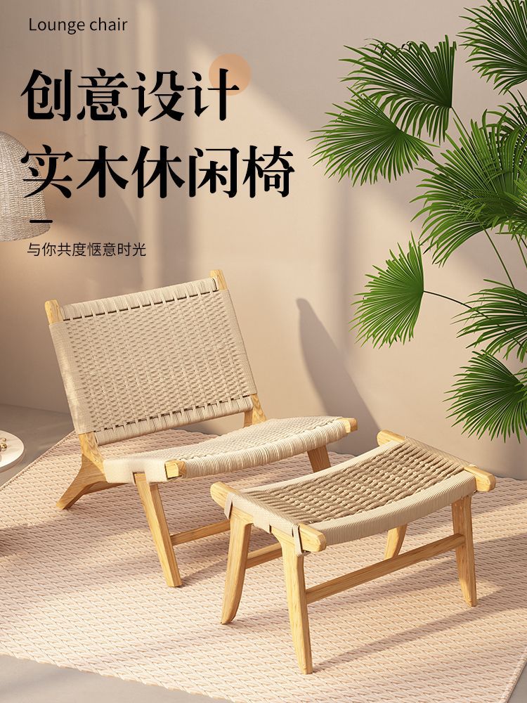 밧줄로 짠 단단한 나무 단일 소파 의자 북유럽 스타일 발코니 캐주얼 의자 일본 스타일 조용한 스타일 작은 아파트 등받이 게으른 의자
