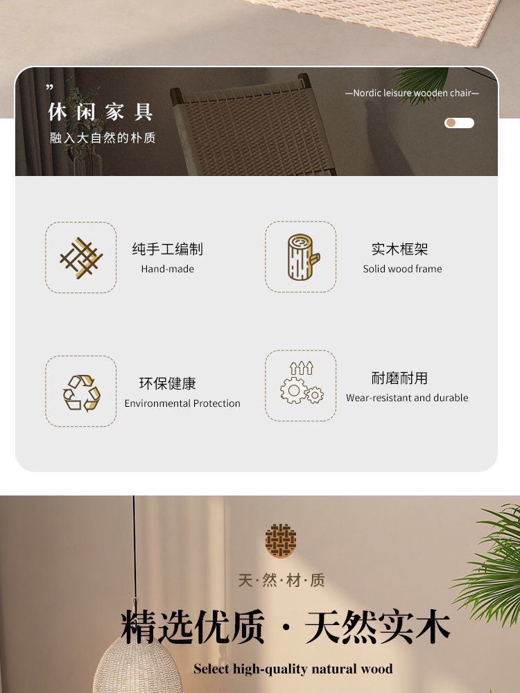 밧줄로 짠 단단한 나무 단일 소파 의자 북유럽 스타일 발코니 캐주얼 의자 일본 스타일 조용한 스타일 작은 아파트 등받이 게으른 의자스토어 가기