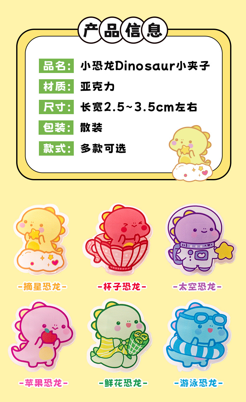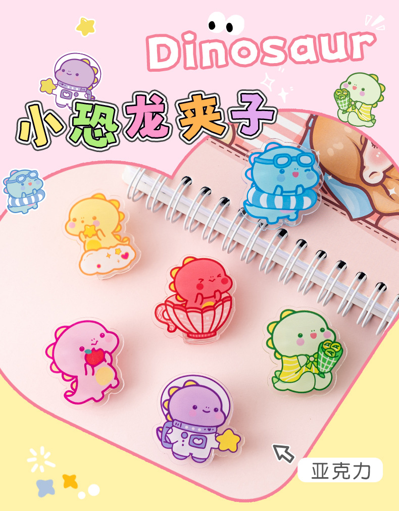 작은 공룡 만화 클립 귀여운 아크릴 PP 클립 창조적 인 손 계정 클립 파일 플립 클립 학습 상 수상스토어 가기