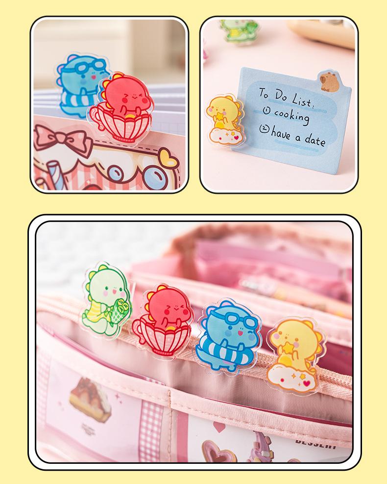 작은 공룡 만화 클립 귀여운 아크릴 PP 클립 창조적 인 손 계정 클립 파일 플립 클립 학습 상 수상