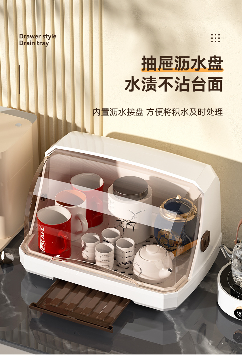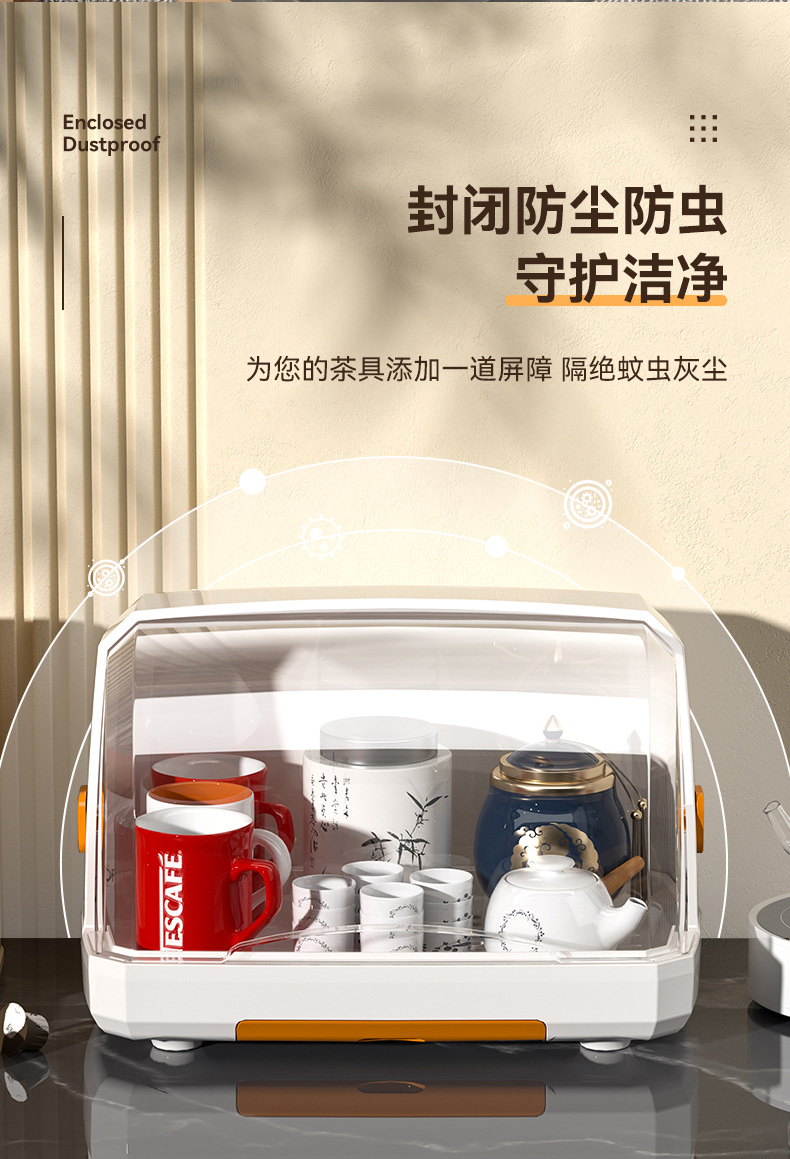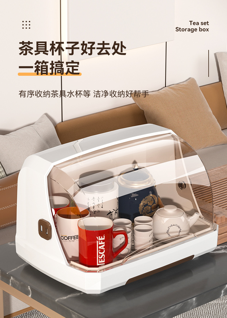 차 컵 차 세트 유리 컵 저장 상자 컵 선반 방진 물 컵 랙 데스크탑 캐비닛 병 저장 상자