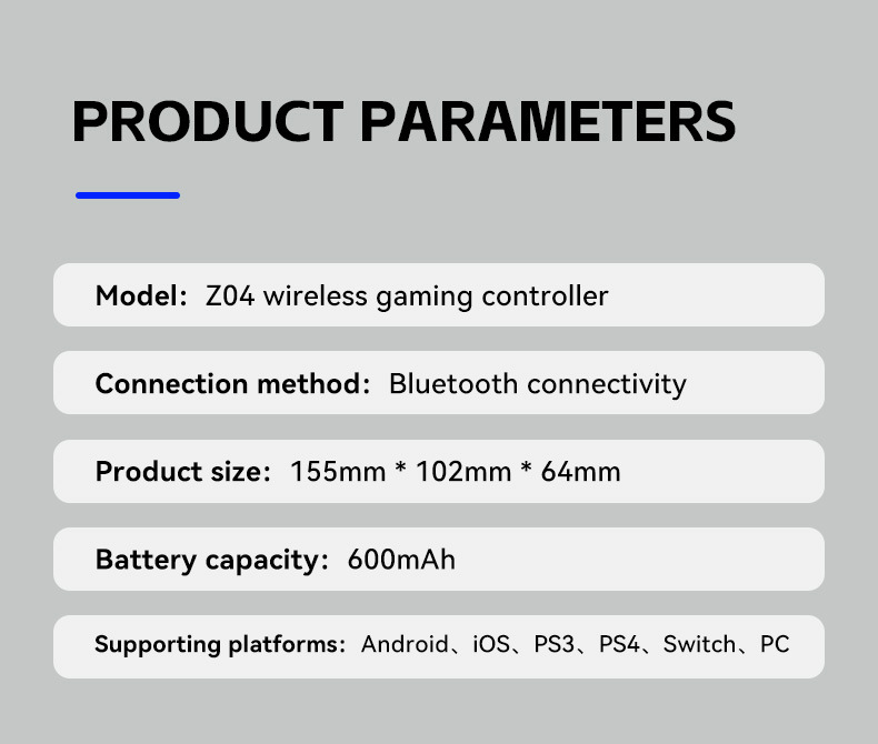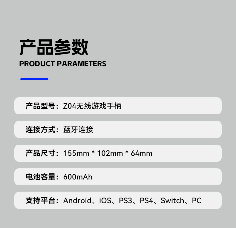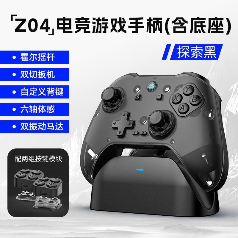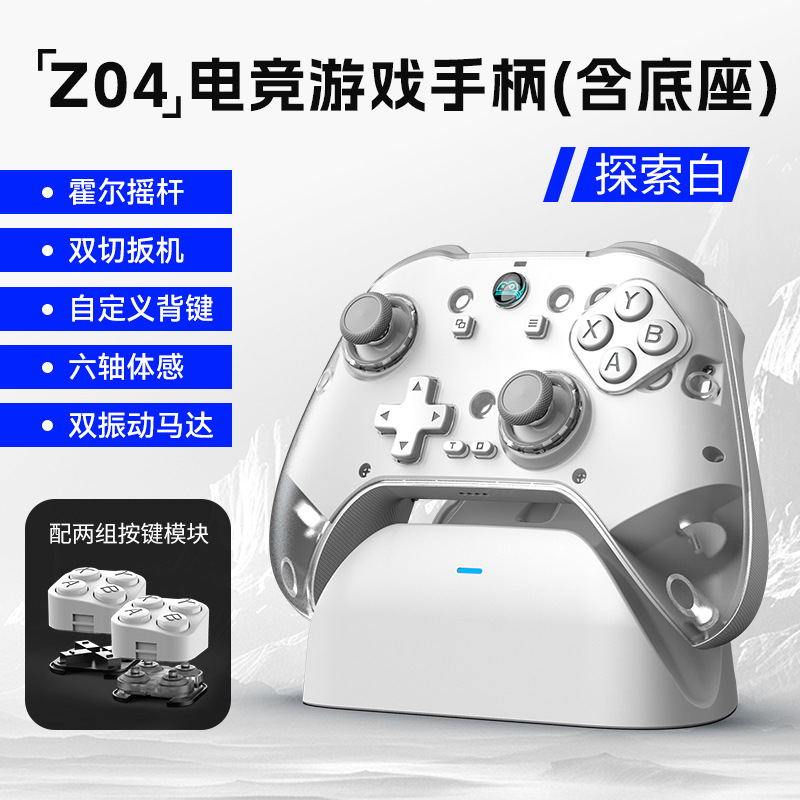 Z04手柄包装清单:手柄一个,接收器一个,座充一个、微动ABXY一组,数据线一条,说明书一本。