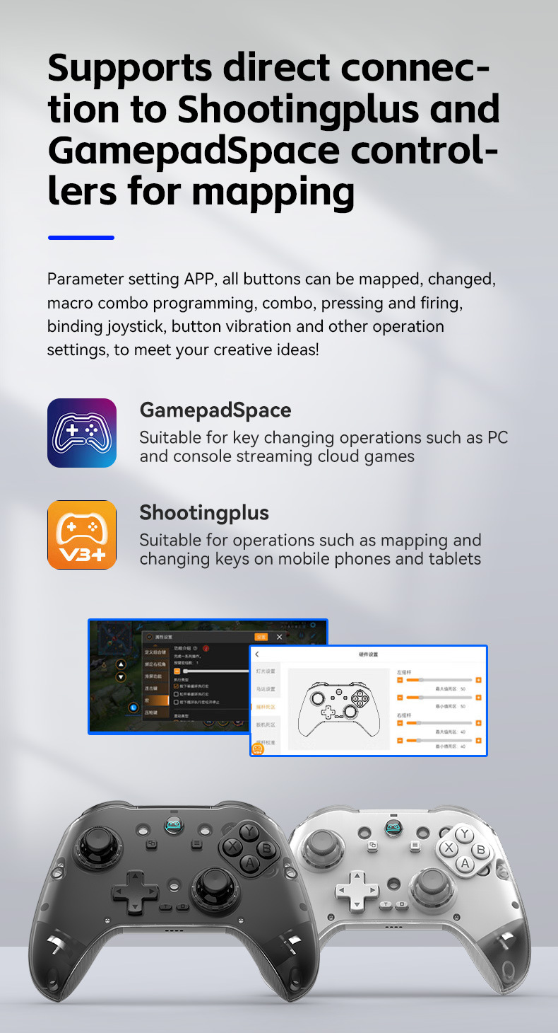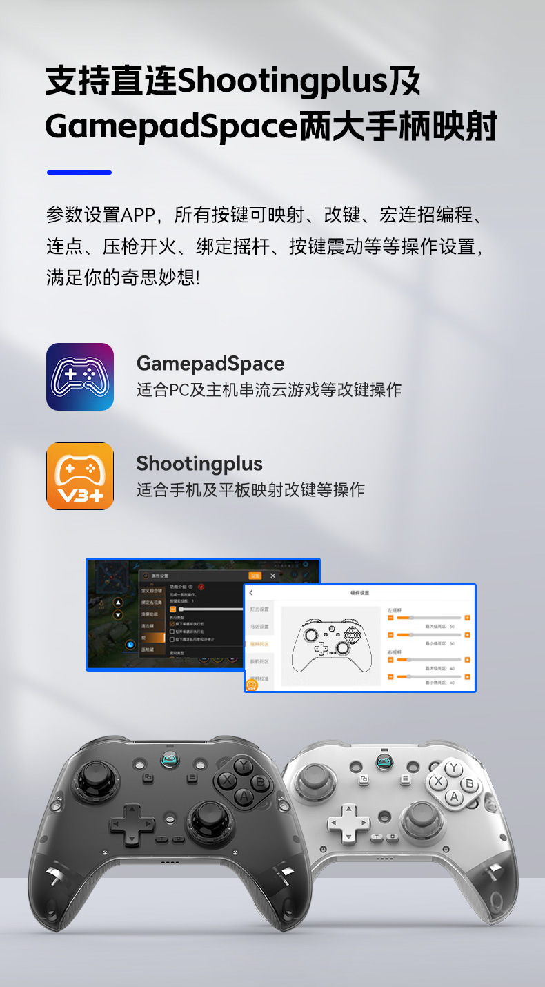 9.支持直连shootingplus及Gamepadspace两大手柄映射。