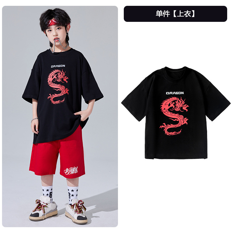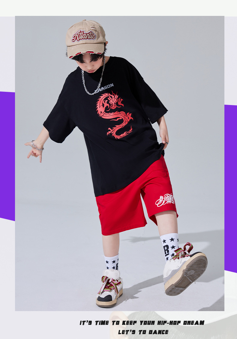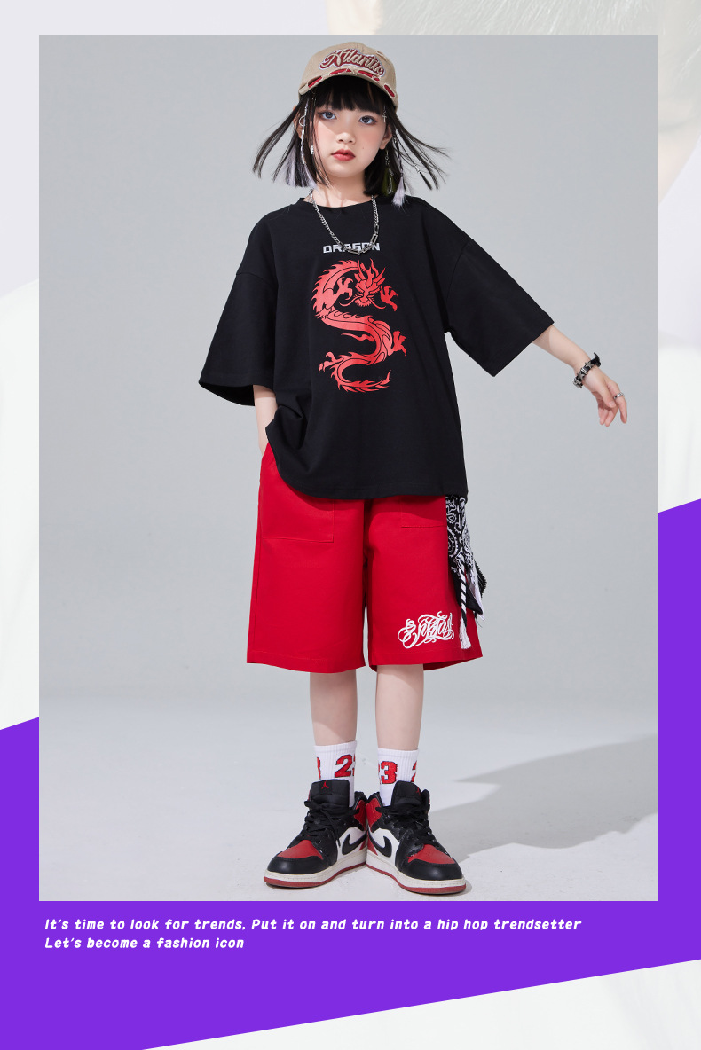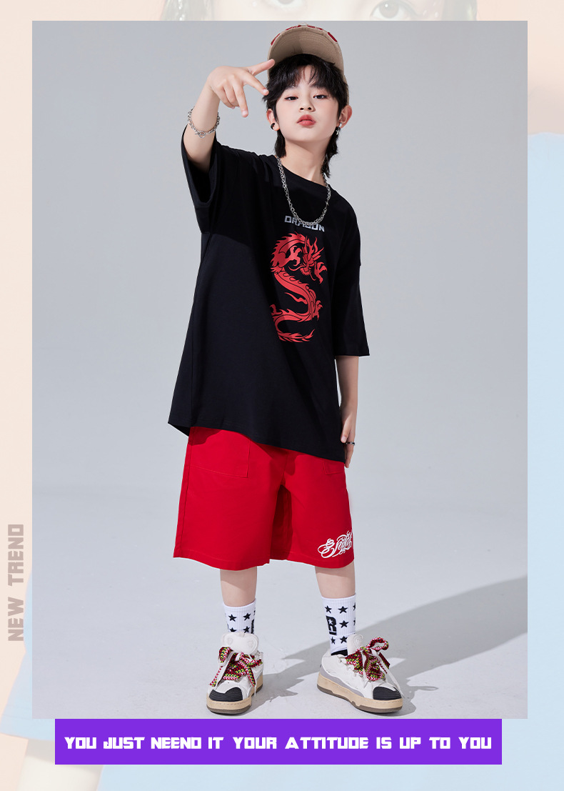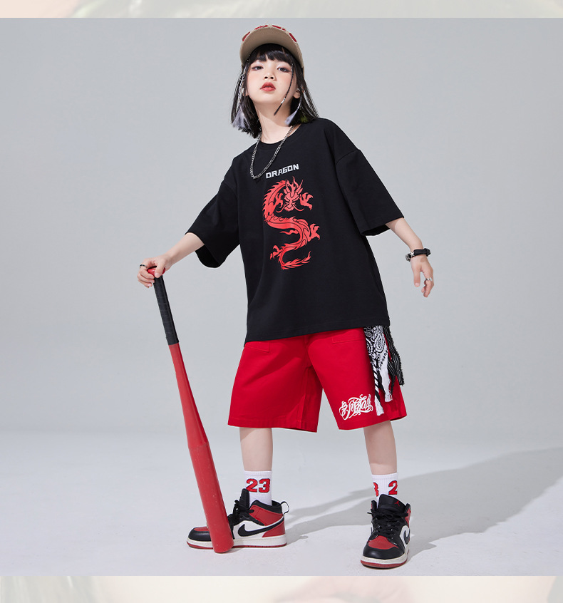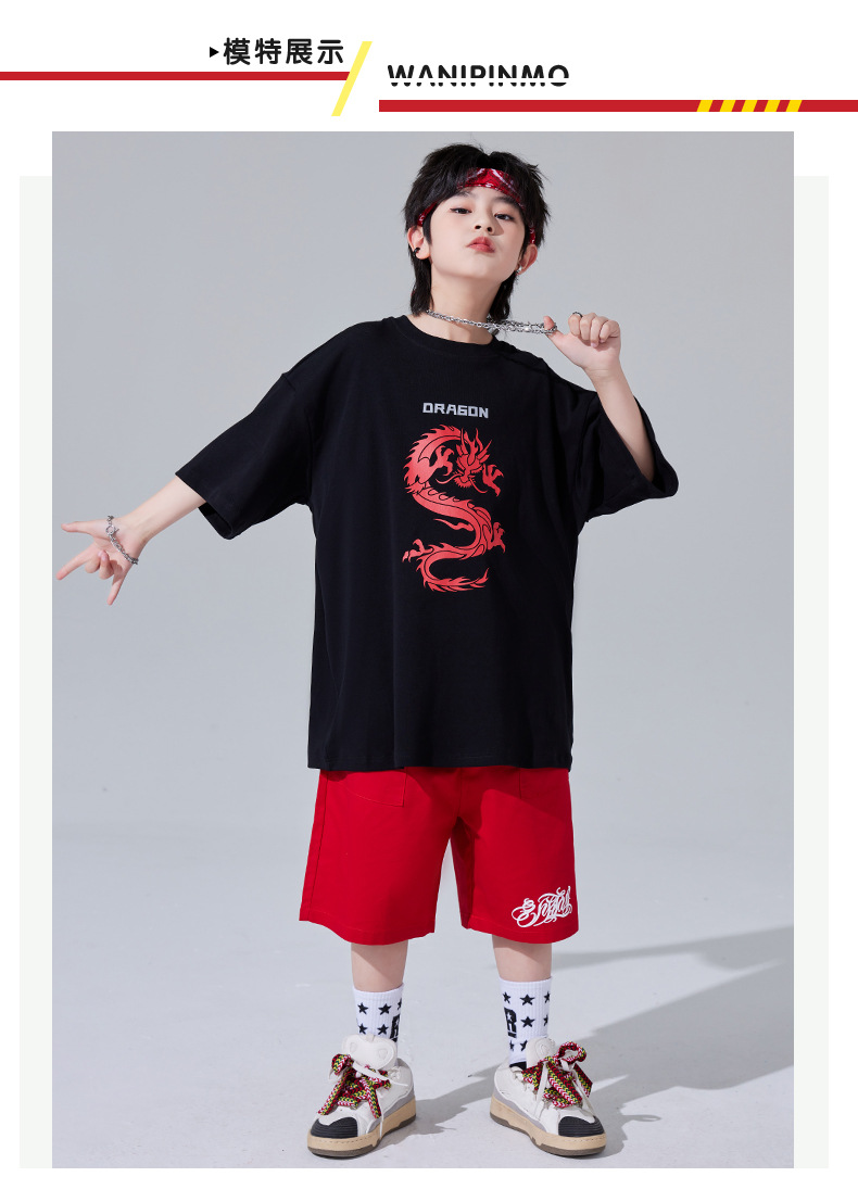 • JW11 드래곤 블랙 짧은 소매 X803 레드 툴링 반바지 레드 터번