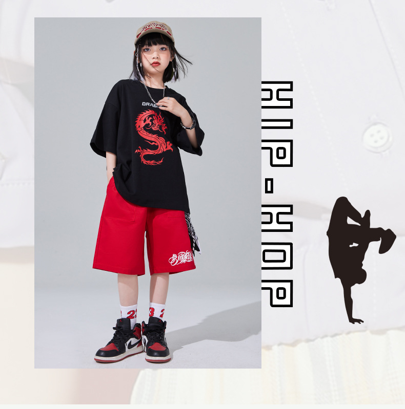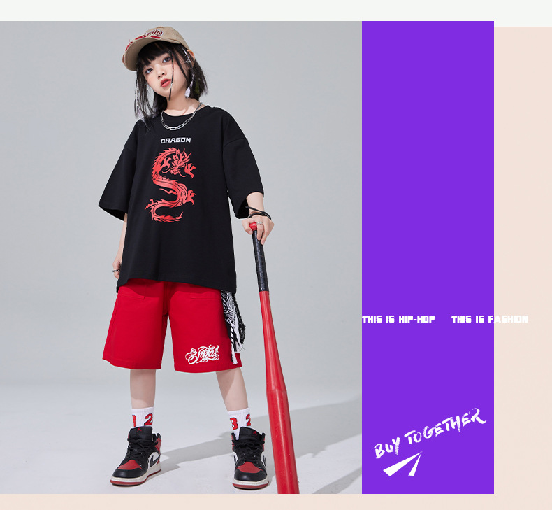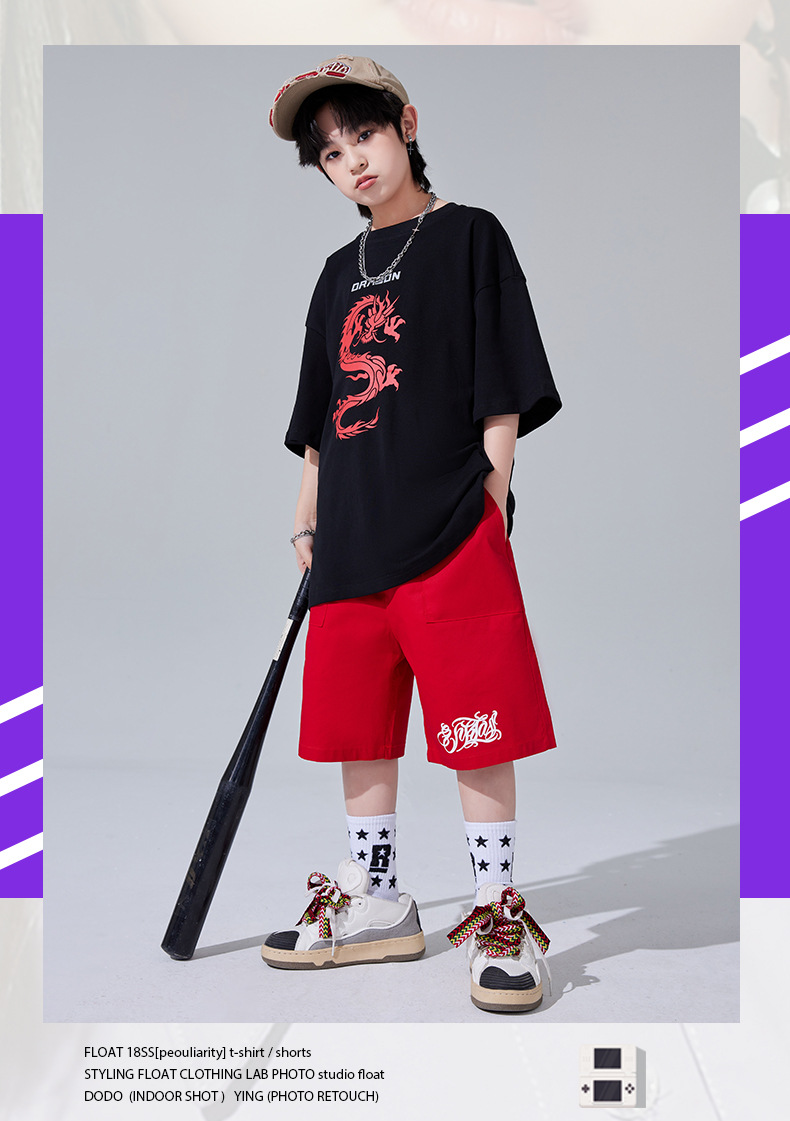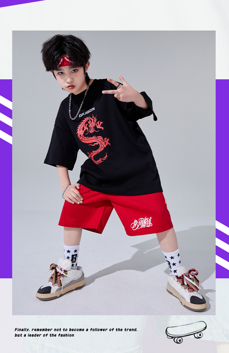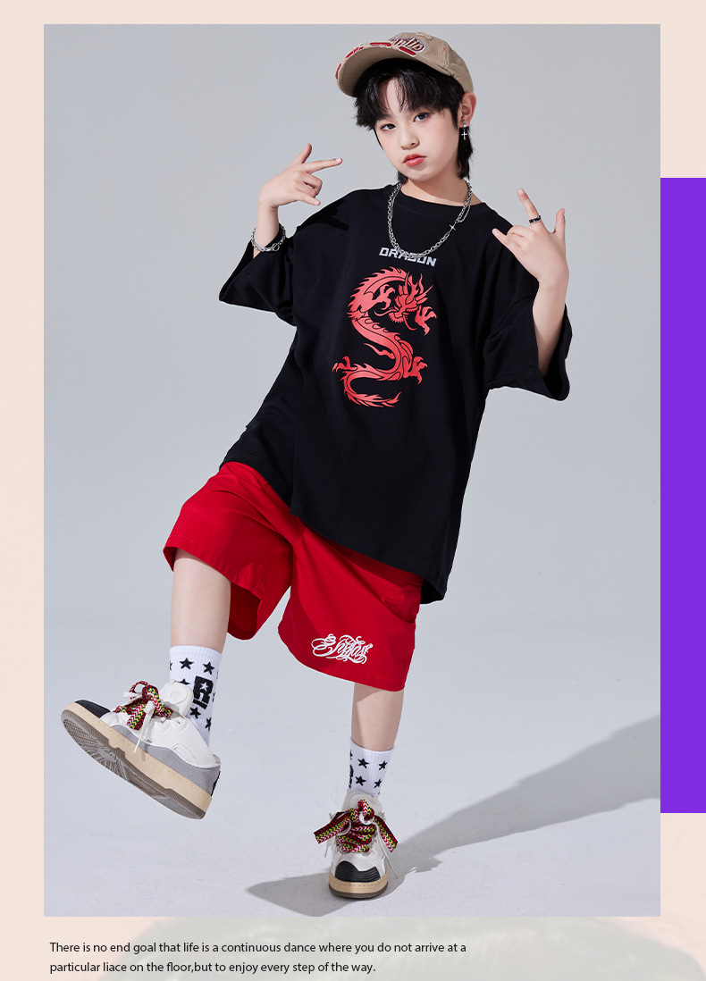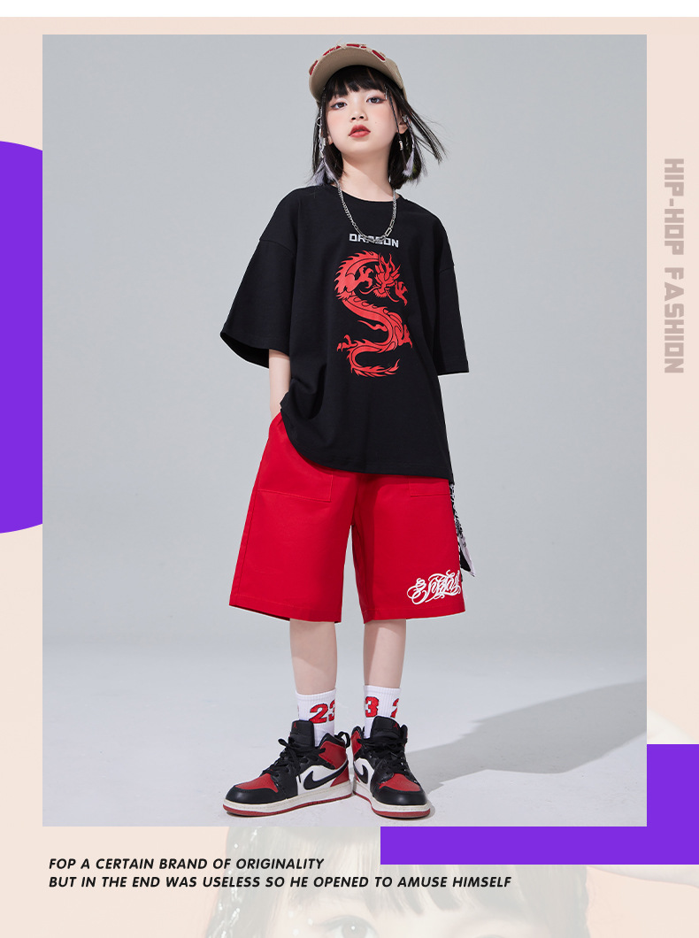 • JW11 드래곤 블랙 짧은 소매 X803 레드 툴링 반바지 레드 터번