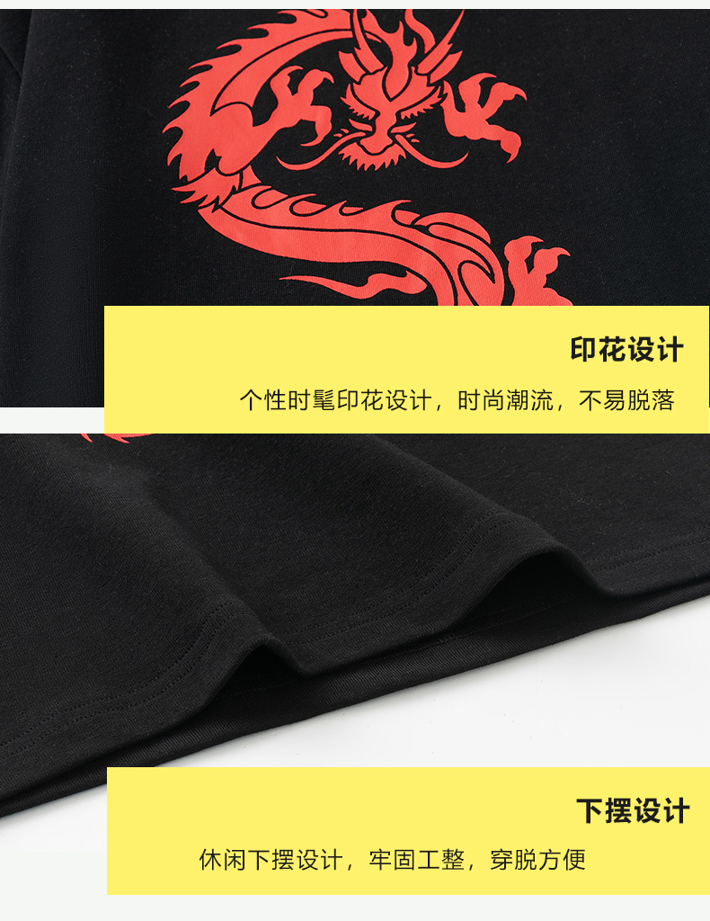 • 드래곤 패턴이있는 JW11 검은 색 짧은 소매