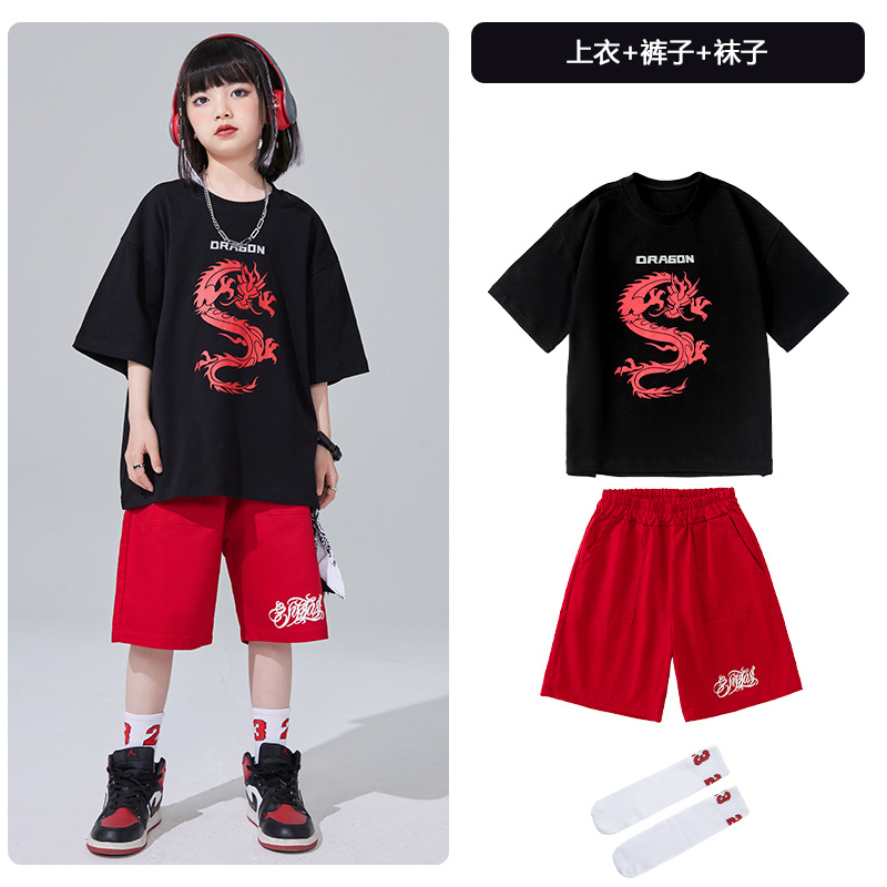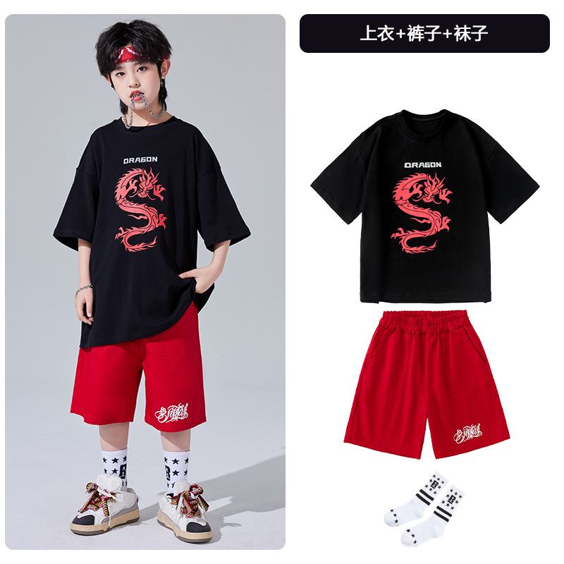 • JW11 드래곤 블랙 짧은 소매 X803 레드 툴링 반바지 스타 양말