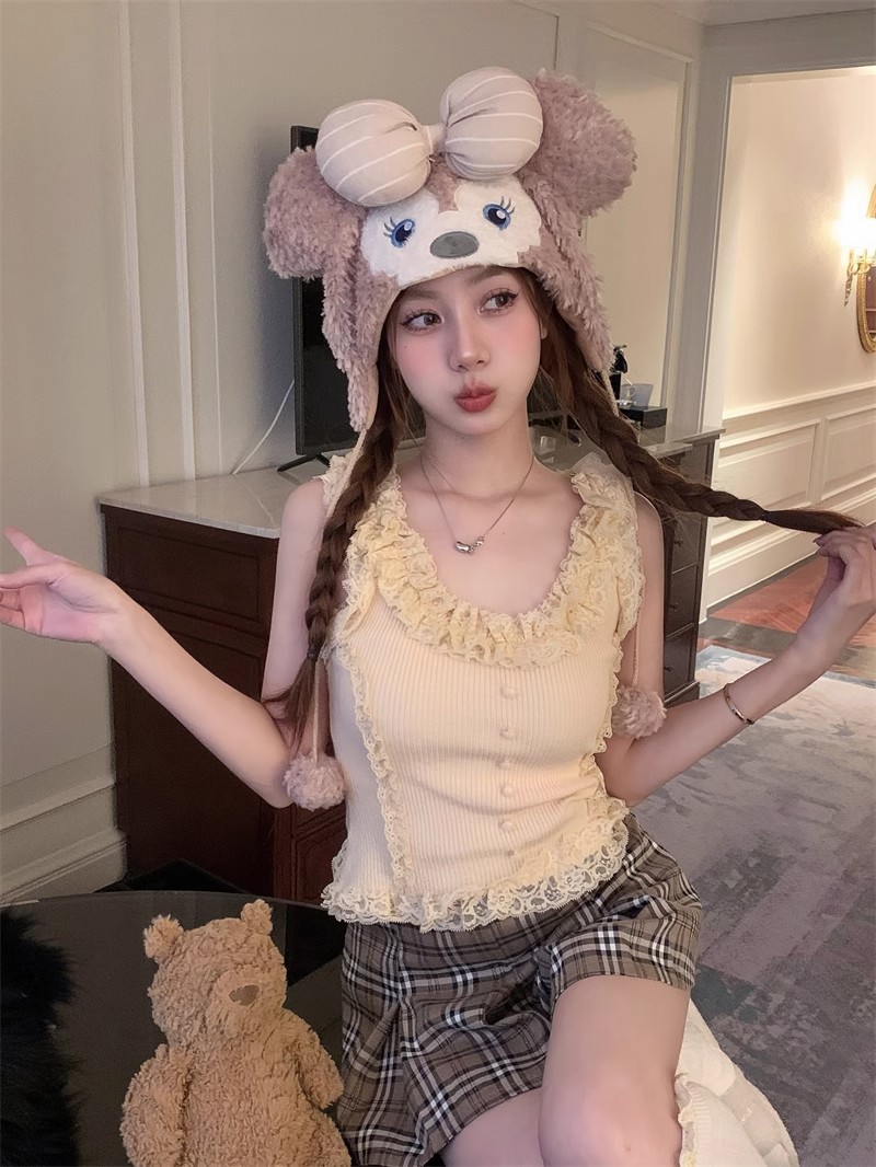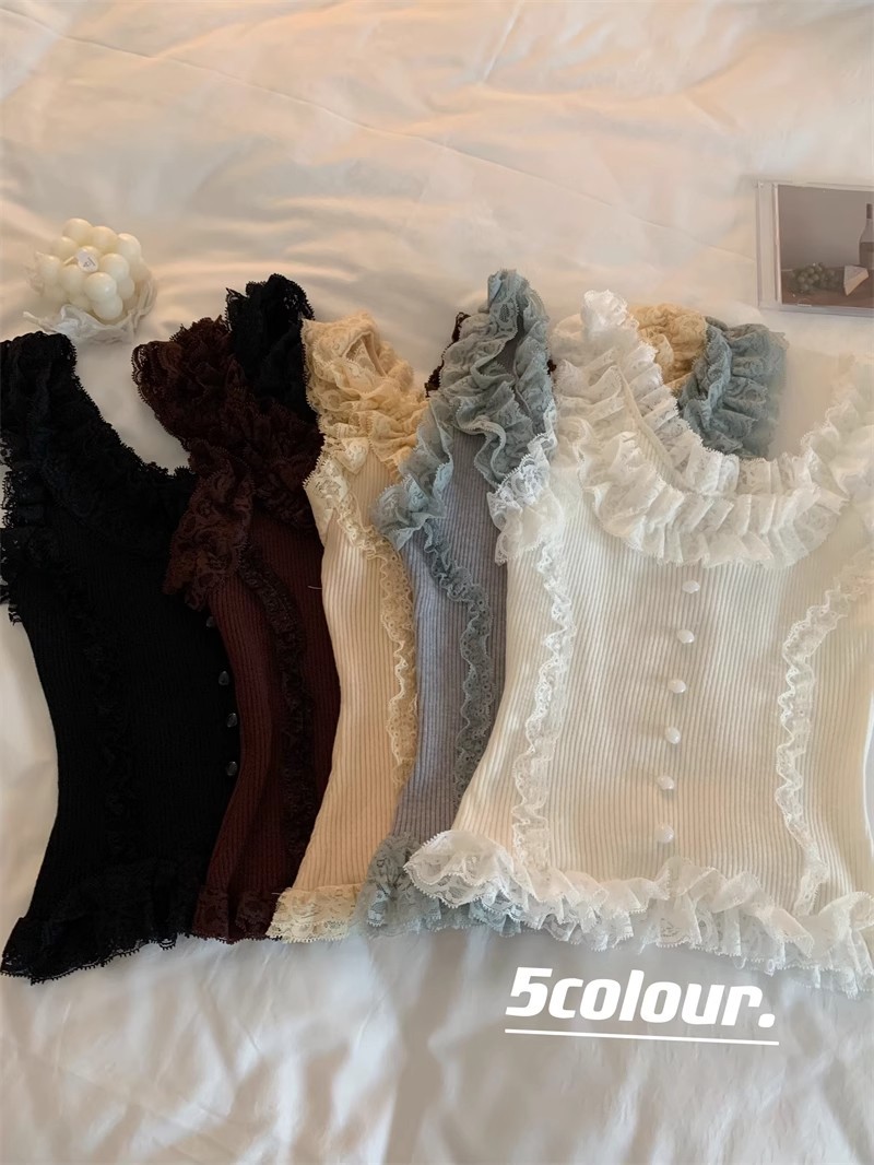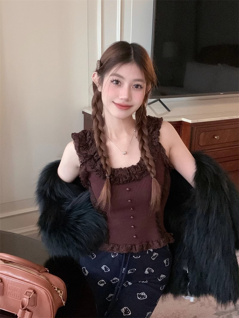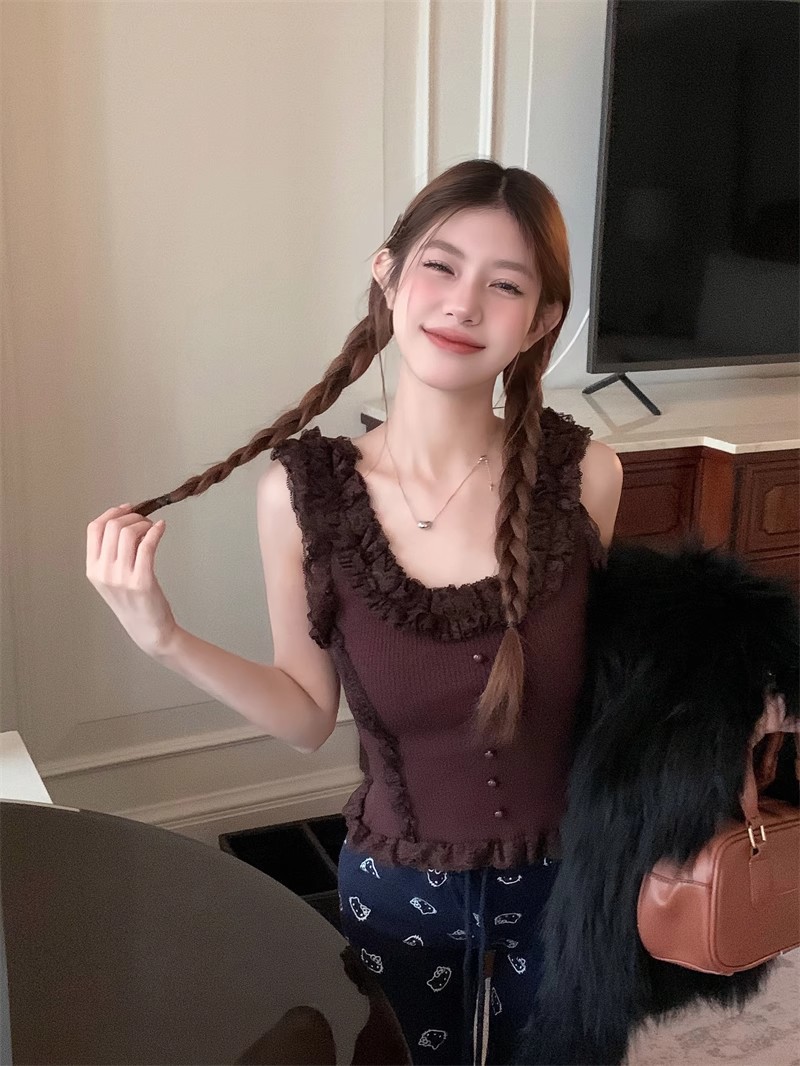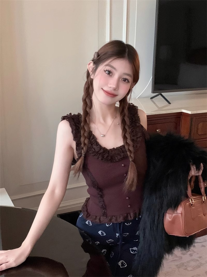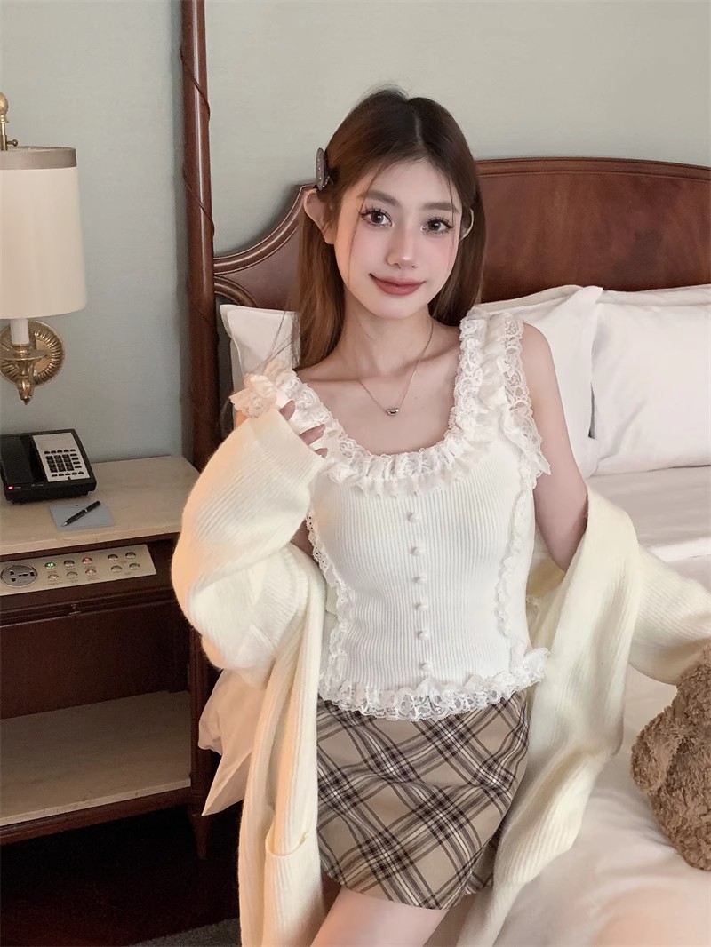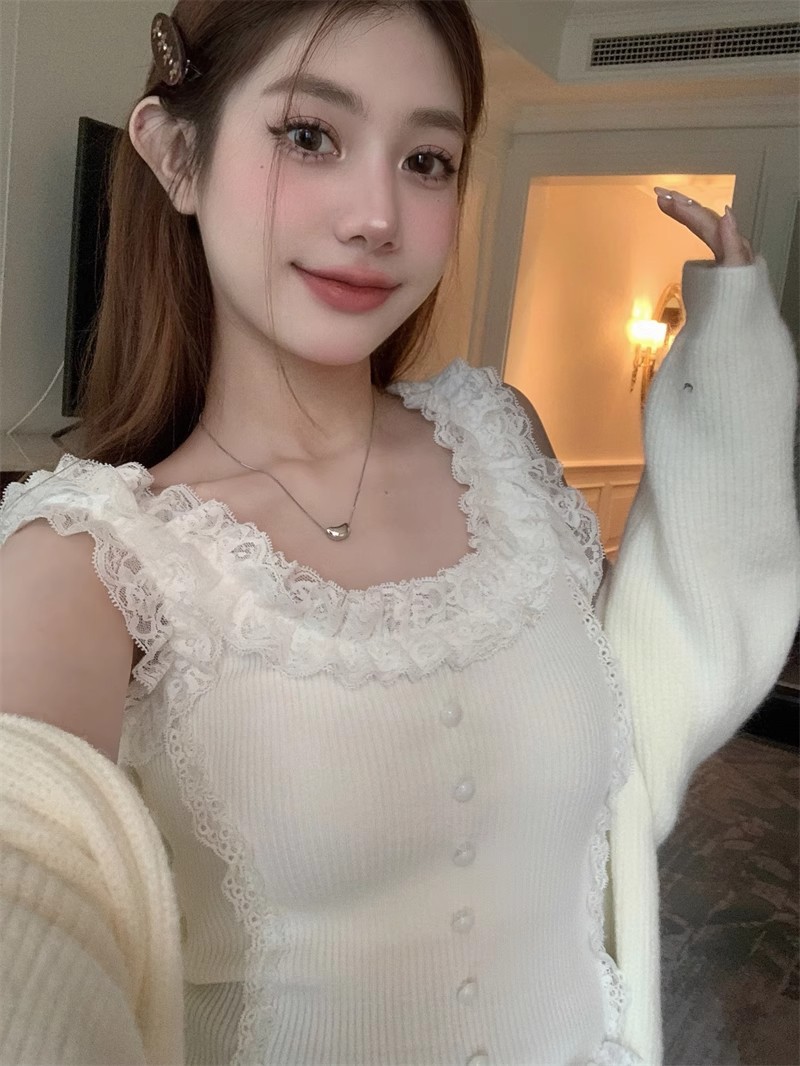 Pure Desire Hot Girl 레이스 캐미솔 여성 2024 뉴 여름 시크 틈새 내부 레이어링 탑