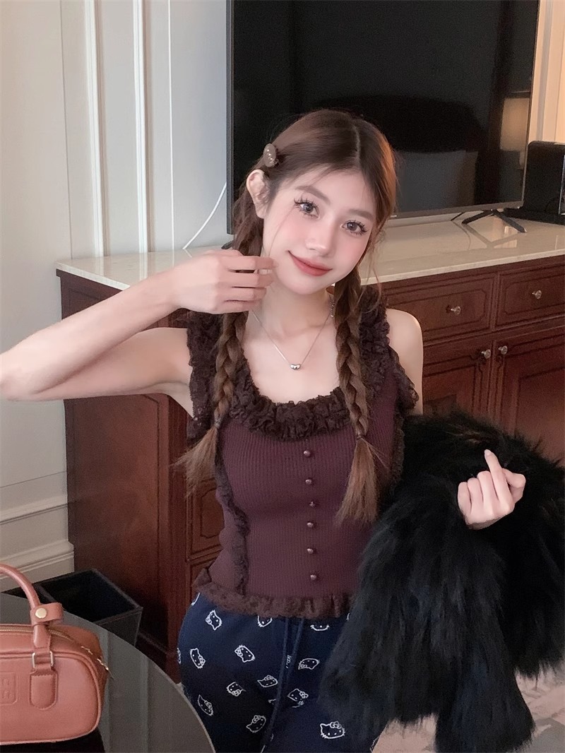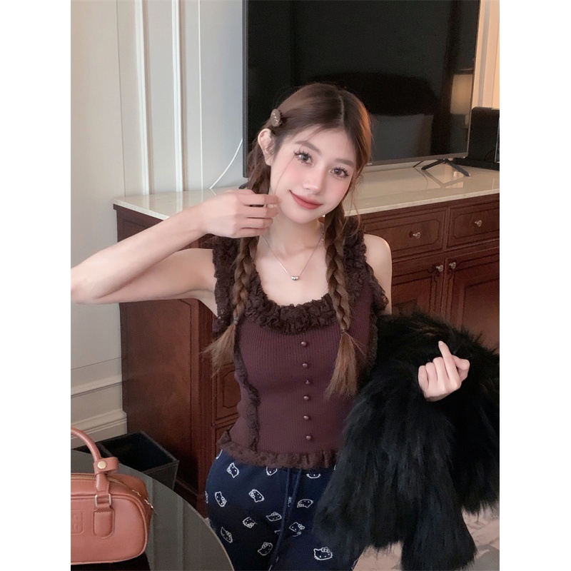Pure Desire Hot Girl 레이스 캐미솔 여성 2024 뉴 여름 시크 틈새 내부 레이어링 탑스토어 가기