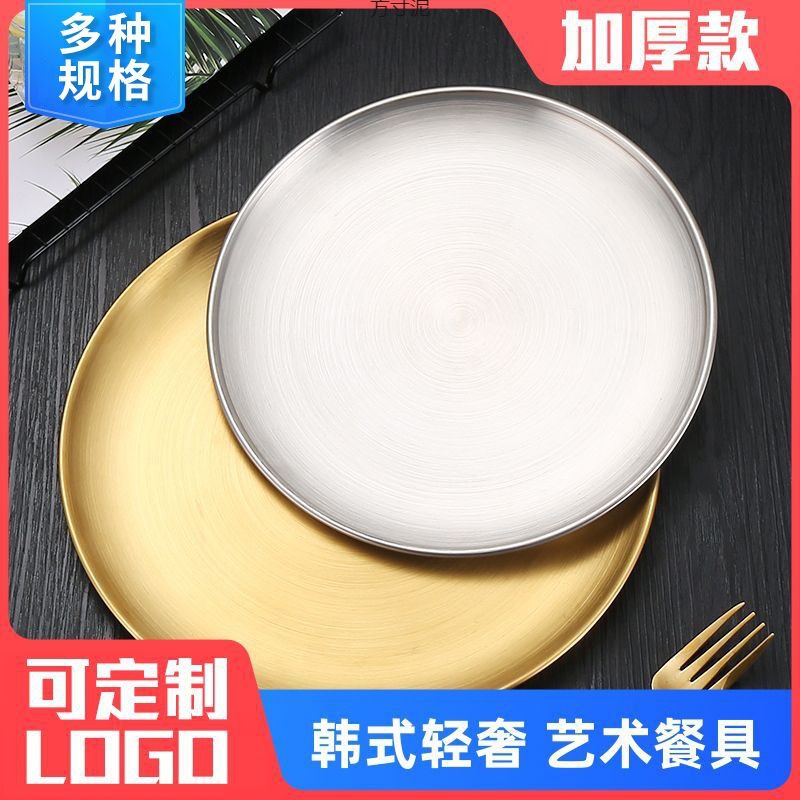304 스테인레스 스틸 두꺼운 디스크 바베큐 플레이트 스테인레스 스틸 플레이트 과일 플레이트 뼈 간식 가정용 접시 얕은 평면 디스크스토어 가기