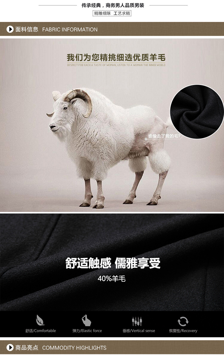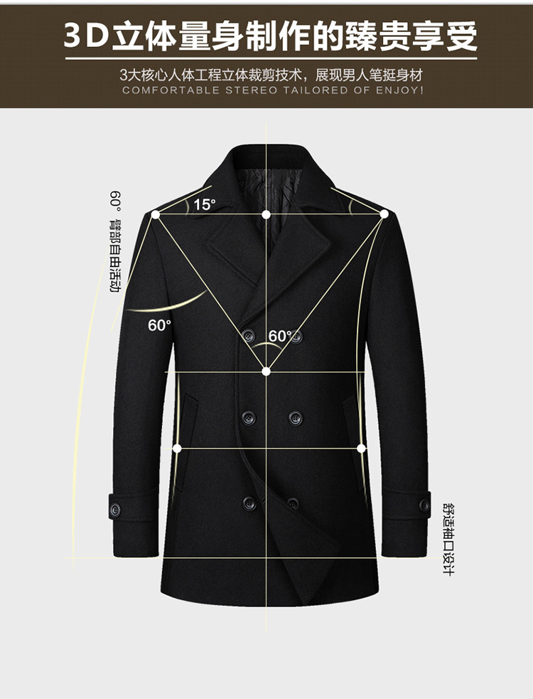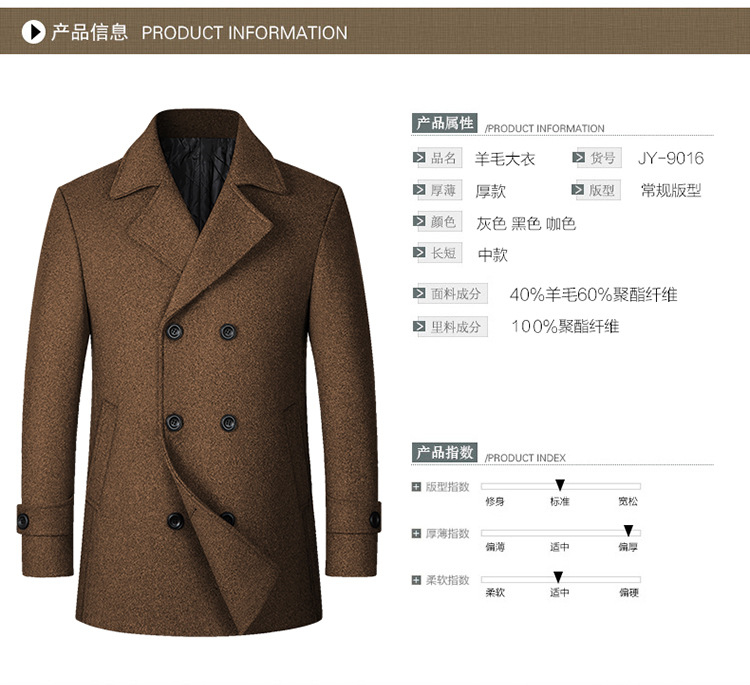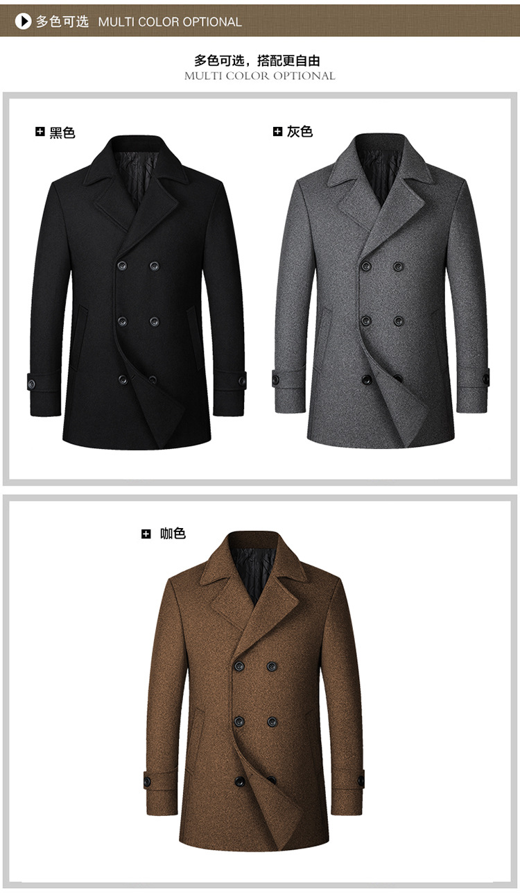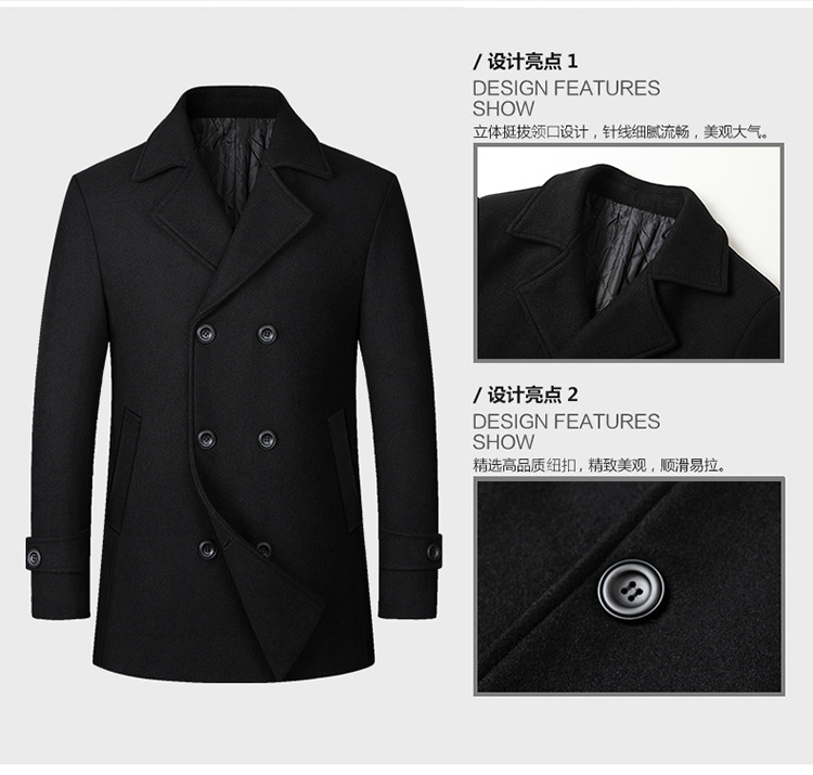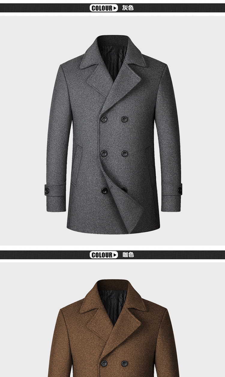 가을과 겨울 새로운 유럽 크기의 남성 울 코트 유행 더블 브레스트 옷깃 남성용 중장 울 코트스토어 가기