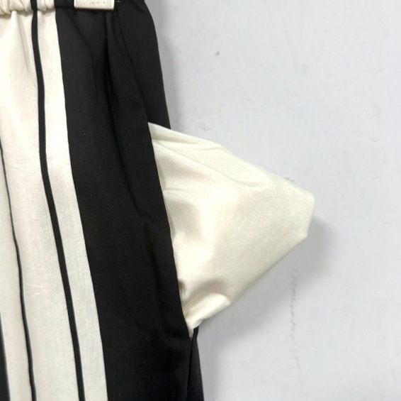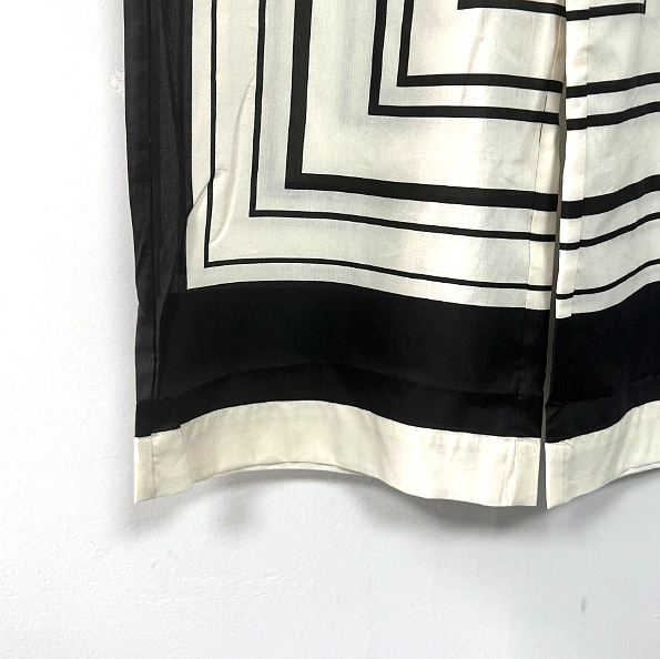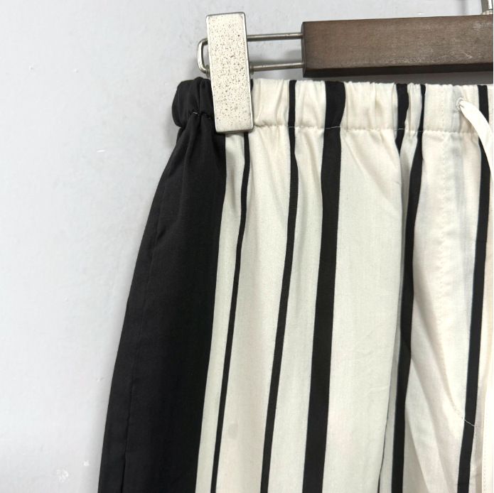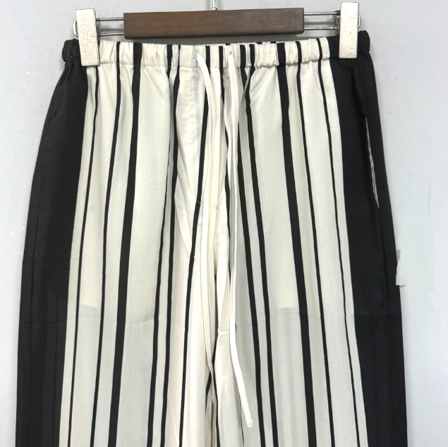 ED2024 여름 새로운 하이 센스 올드 머니 스타일 아트 흑백 줄무늬 실크 로브 탄성 바지스토어 가기