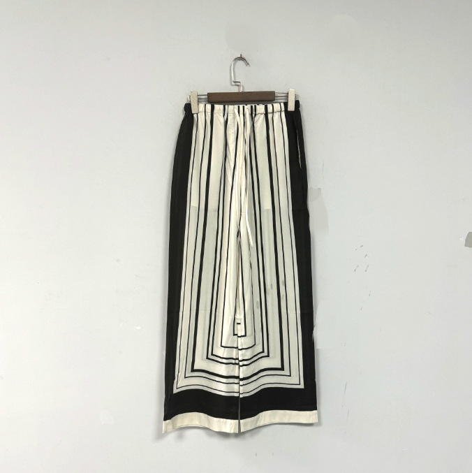 ED2024 여름 새로운 하이 센스 올드 머니 스타일 아트 흑백 줄무늬 실크 로브 탄성 바지