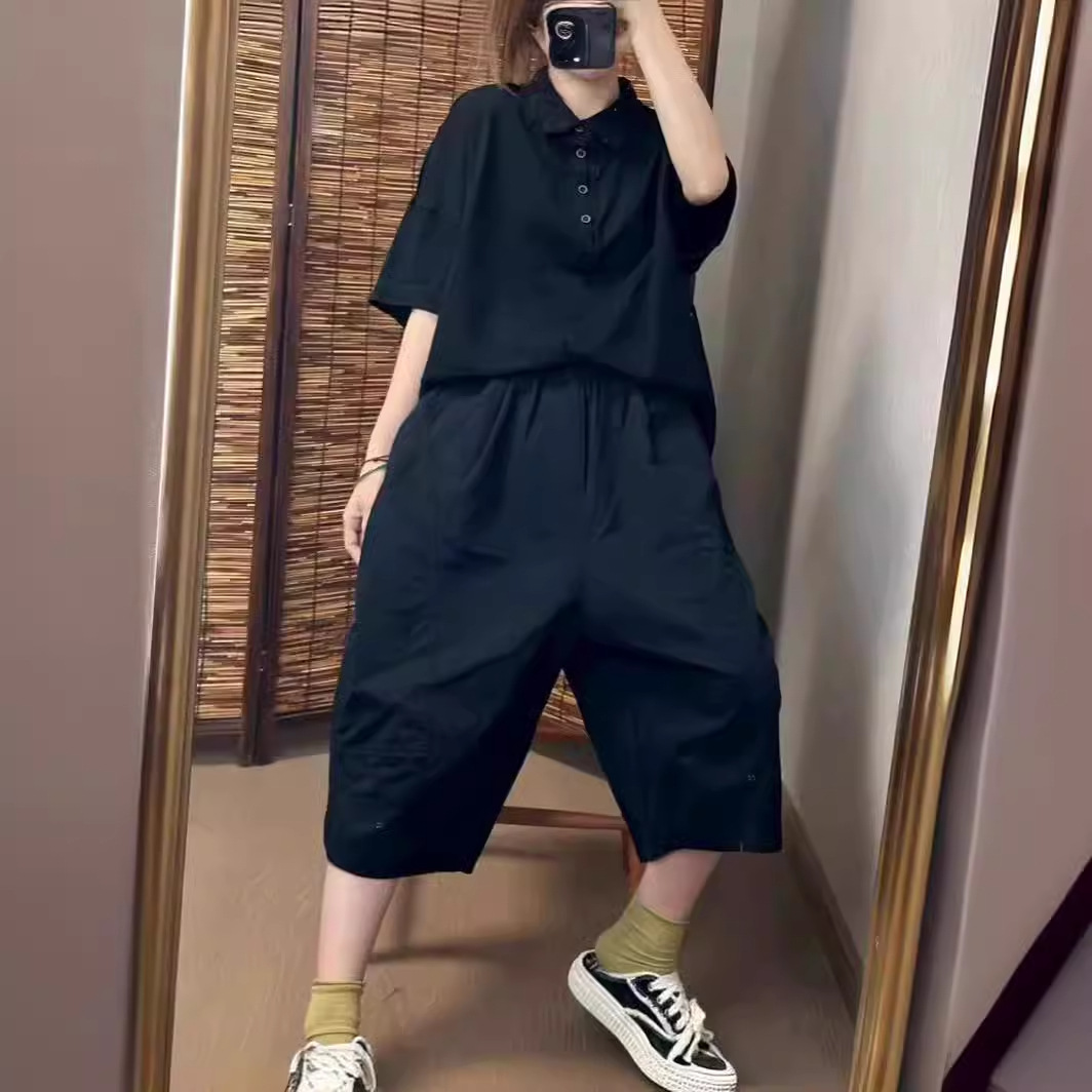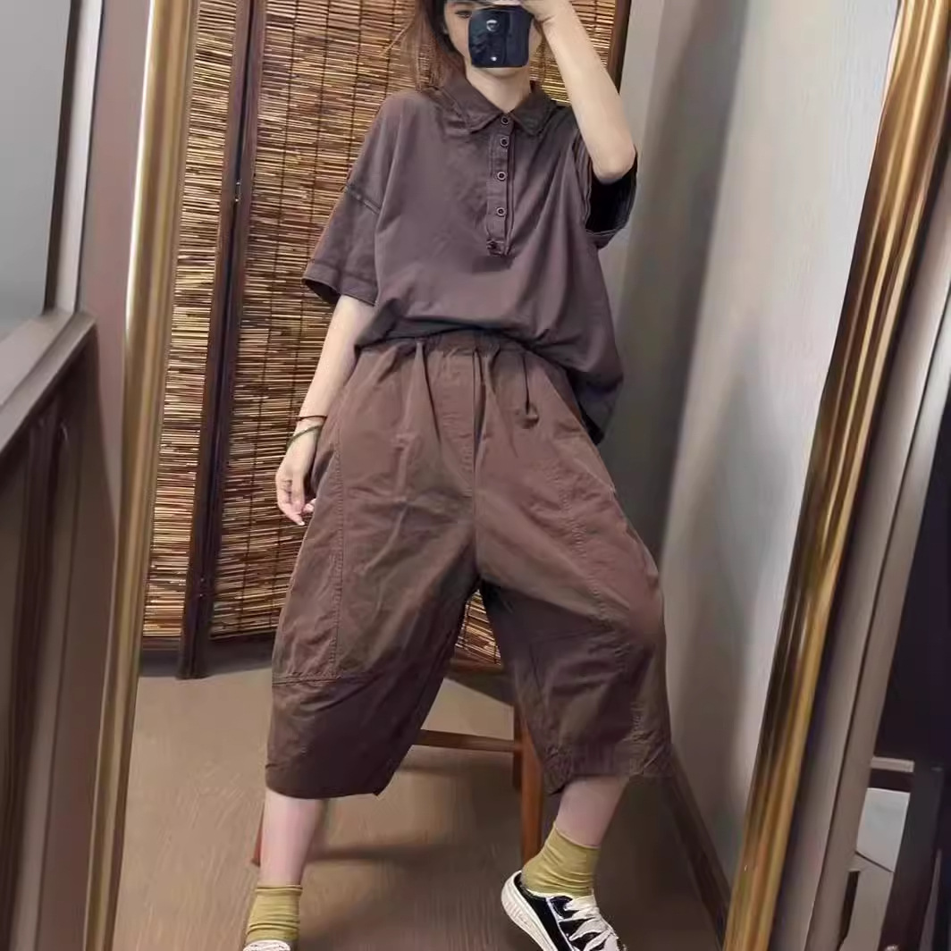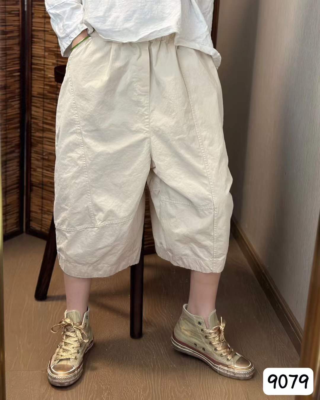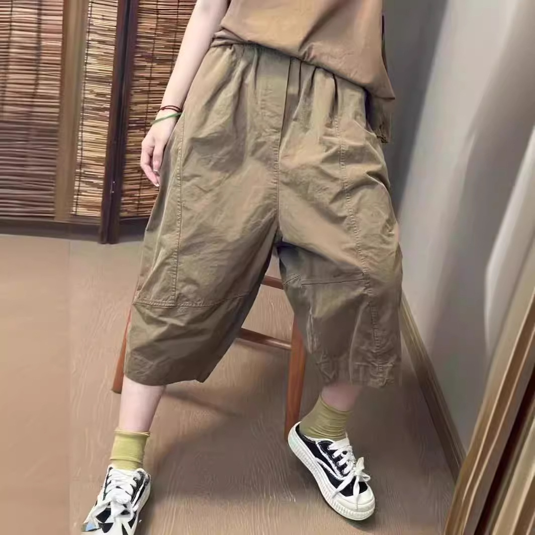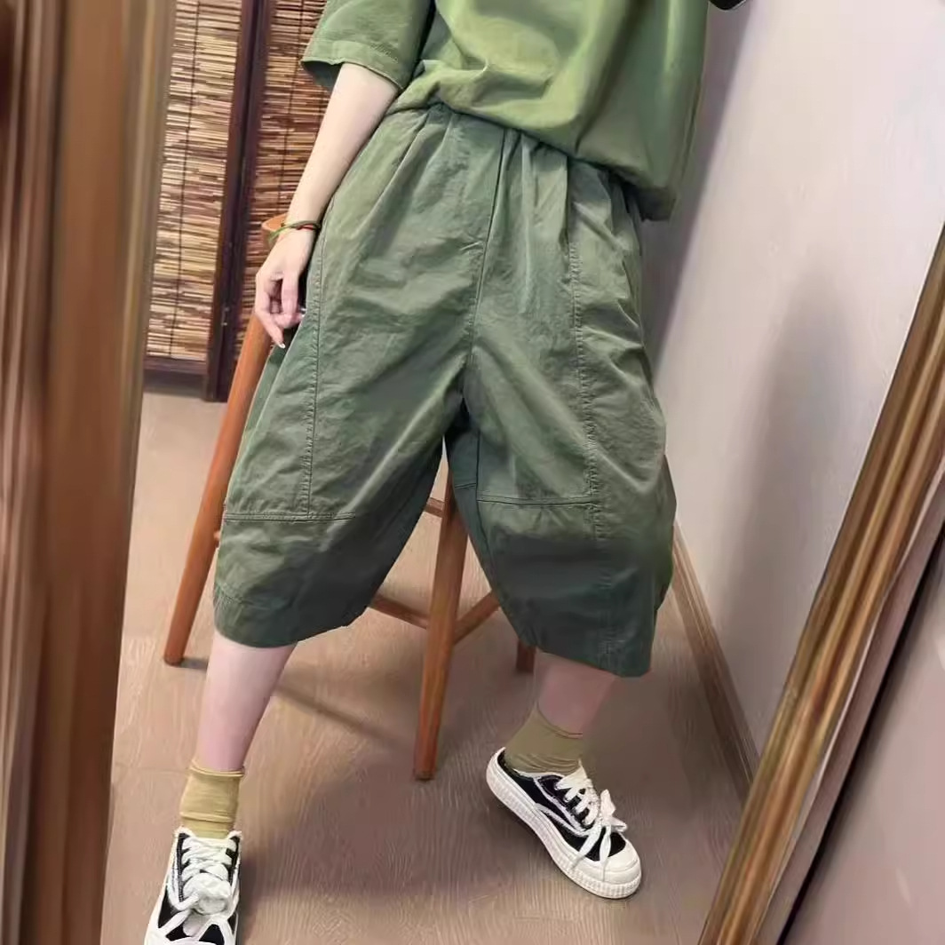 2024 년 여름 새로운 예술적 레트로 코튼 크롭 팬츠 틈새 올 매치 캐주얼 와이드 레그 팬츠