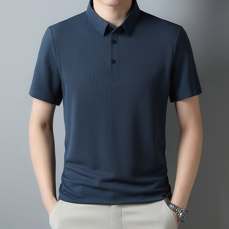 2024 여름 아이스 실크 남성용 폴로 셔츠 캐주얼 남성용 자카드 라 비 다림질 반팔 티셔츠