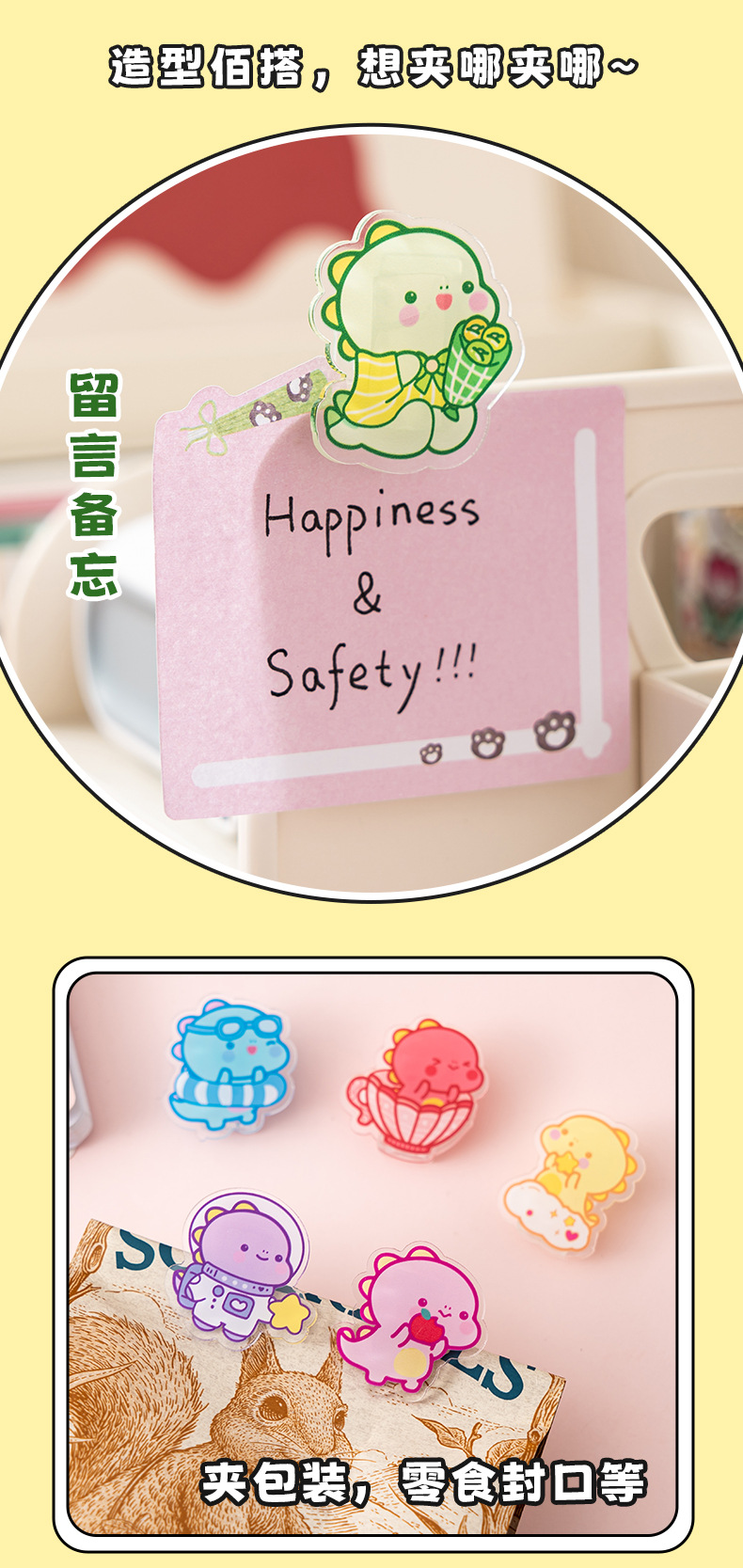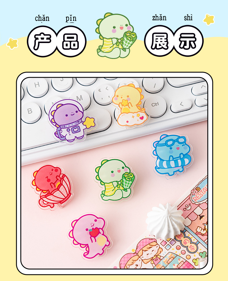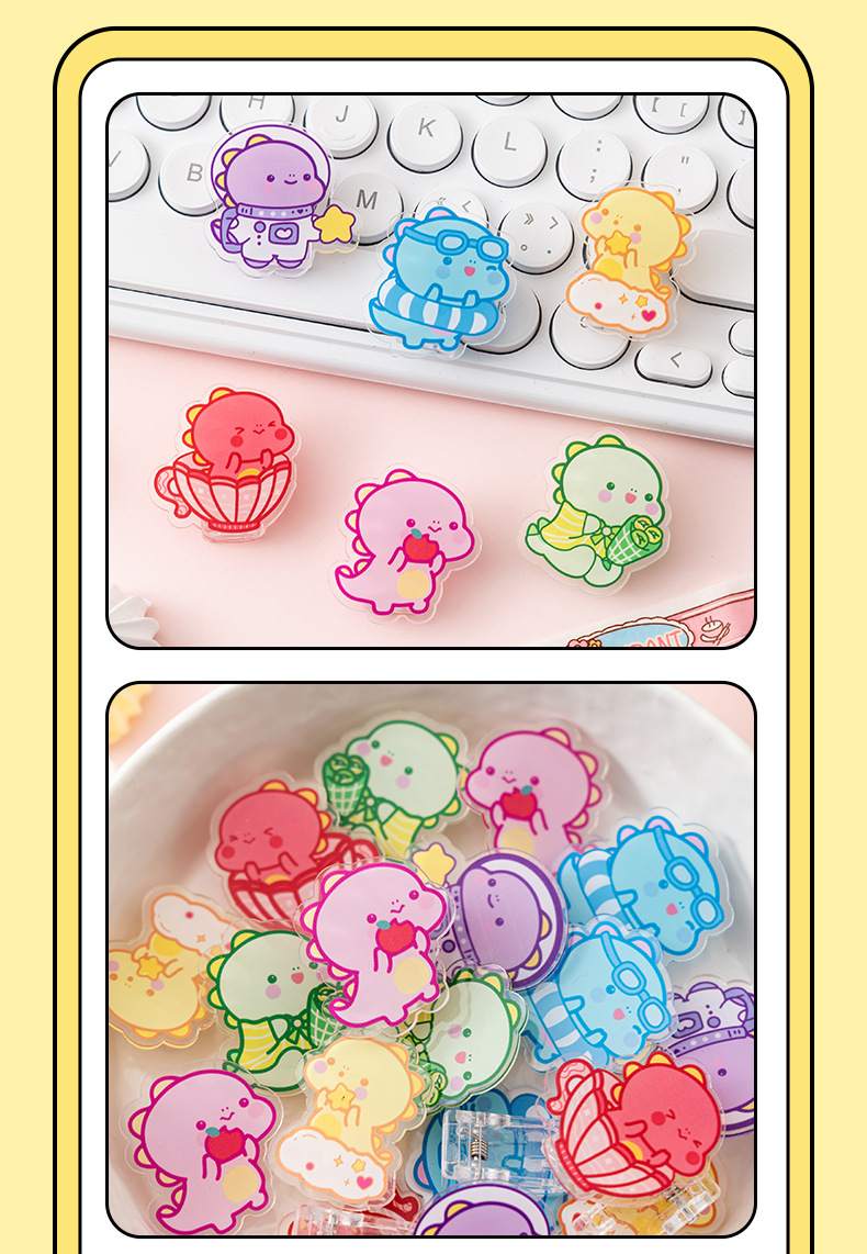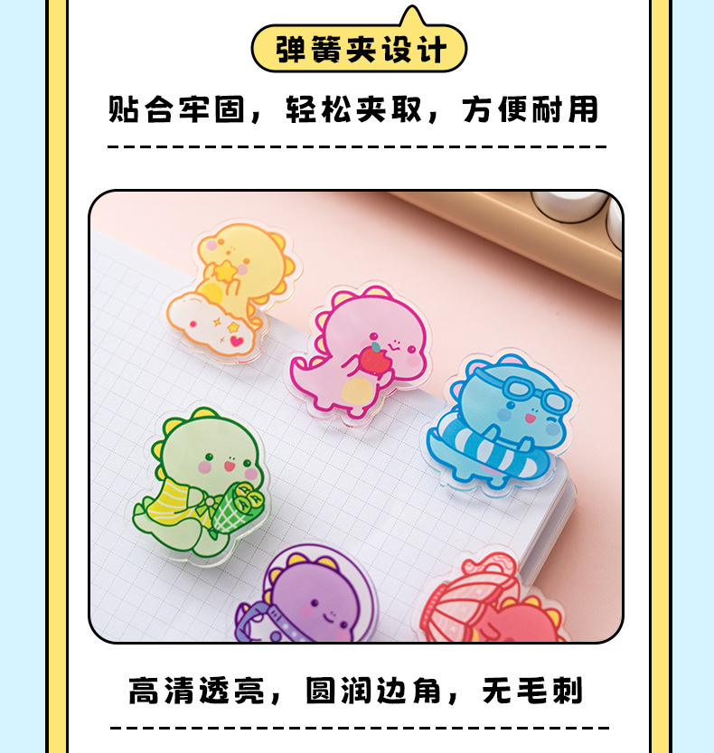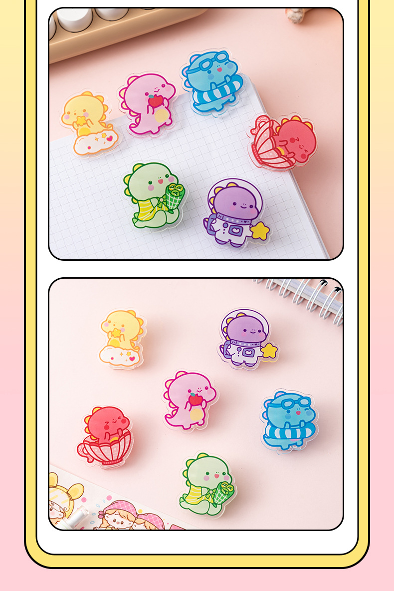 귀여운 공룡 pp 클립 창조적 인 만화에 아크릴 클립 테스트 종이 파일 책 클립 학생 손 계정 장식 클립