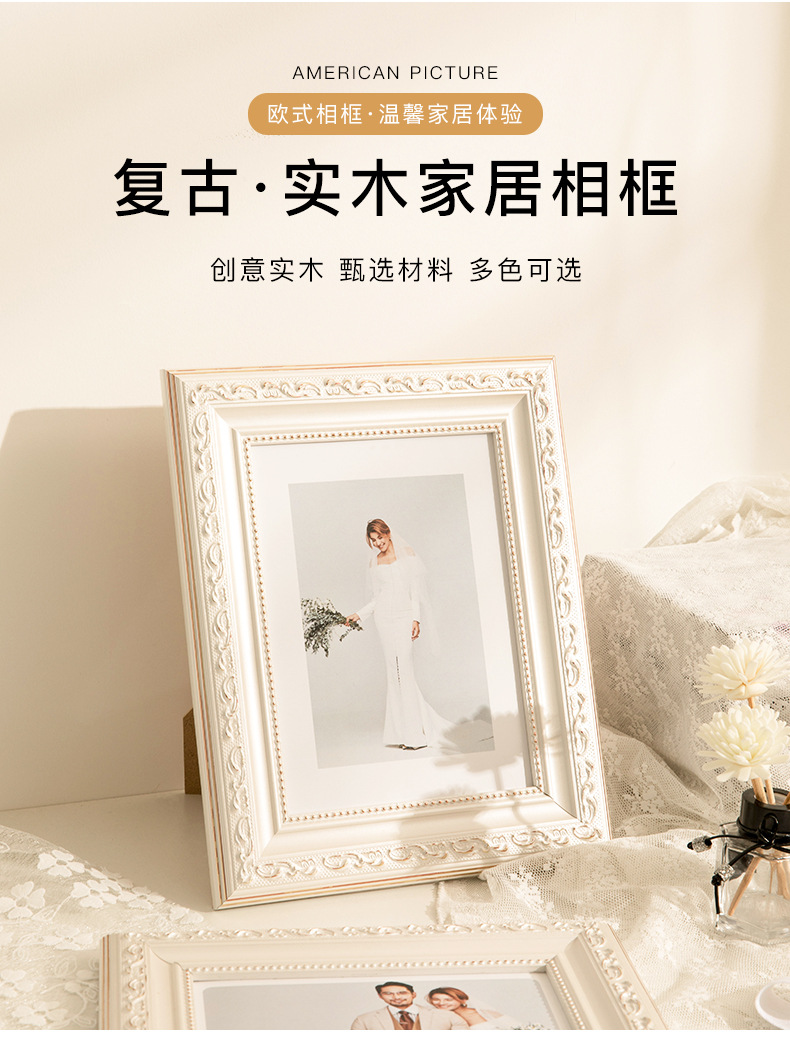 가족사진 원목 액자 유럽풍 라이트 럭셔리 웨딩사진 6inch A4 웨딩사진 액자 벽걸이 사진 인화