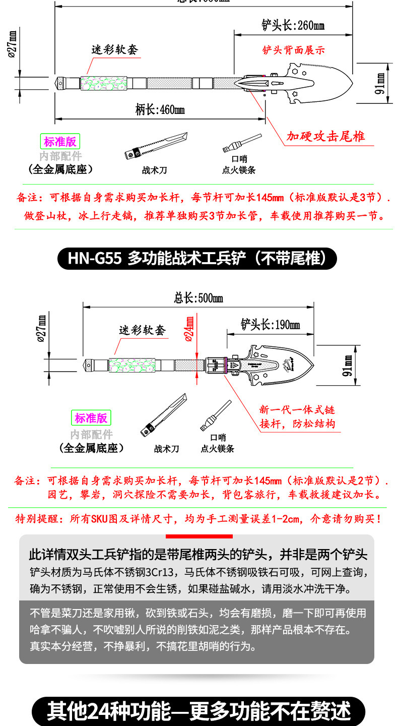 • 단일 헤드 HN-G55 전술 엔지니어링 삽 확장 버전 (1 롱로드)
