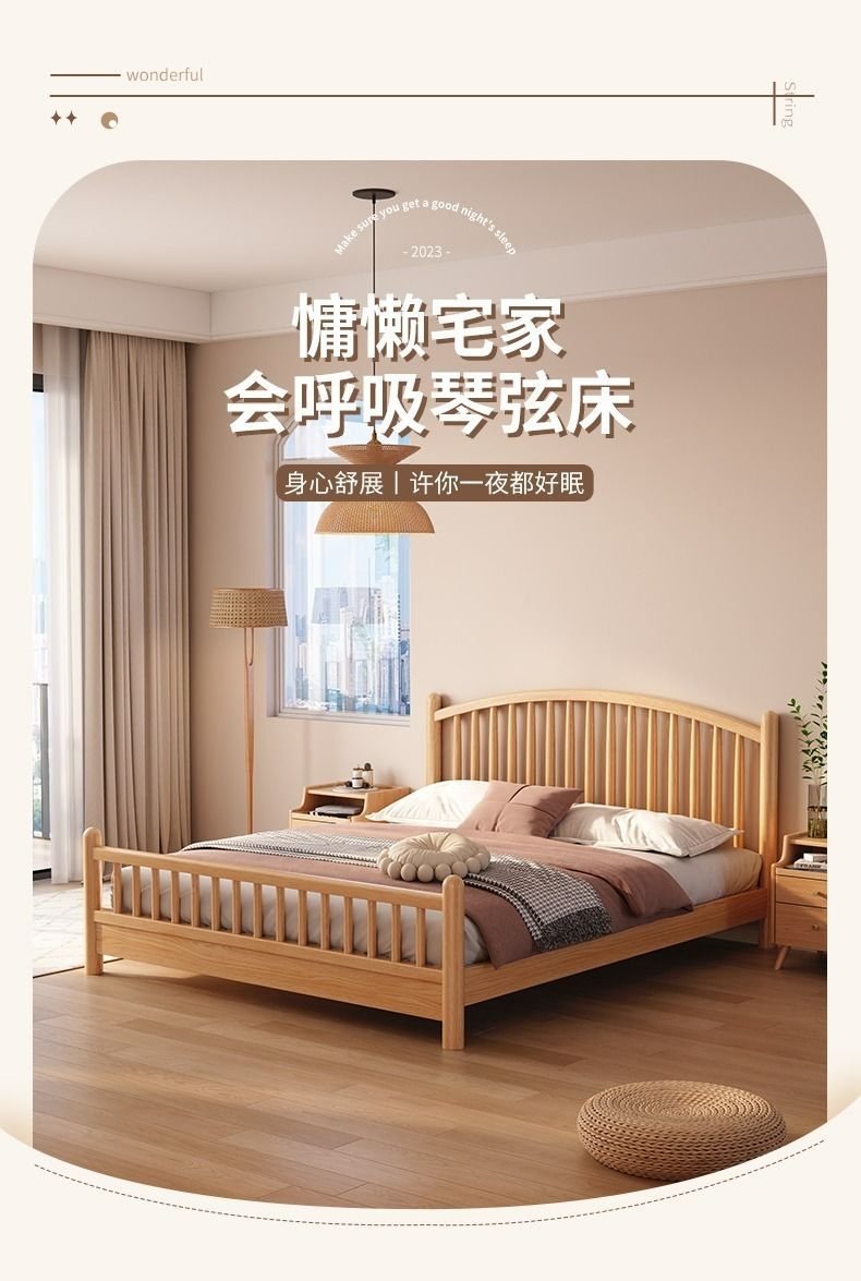 북유럽 침대 솔리드 우드 더블 싱글 윈저 침대 현대 간단한 새로운 중국 웨딩 침대 마스터 침실 아파트 홈스테이 솔리드 우드 침대