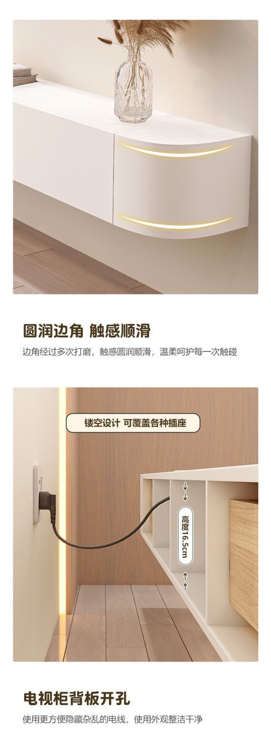 • 둥근 모서리가있는 2.6 m 벽걸이 형 TV 캐비닛