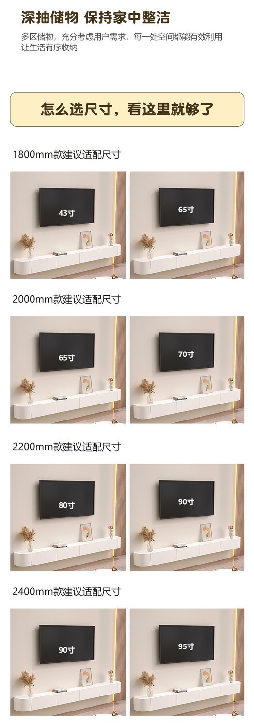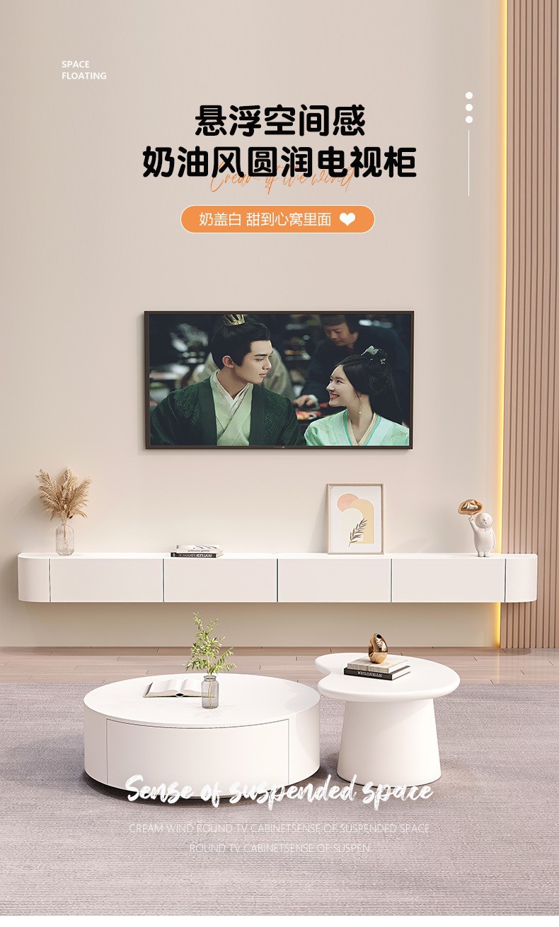 • 둥근 모서리가있는 2.4 m 벽걸이 형 TV 캐비닛