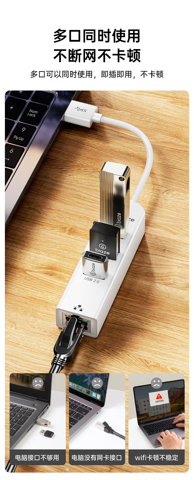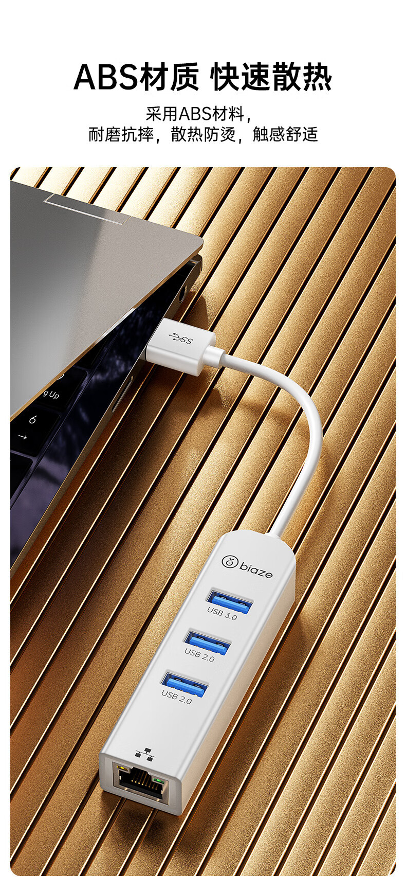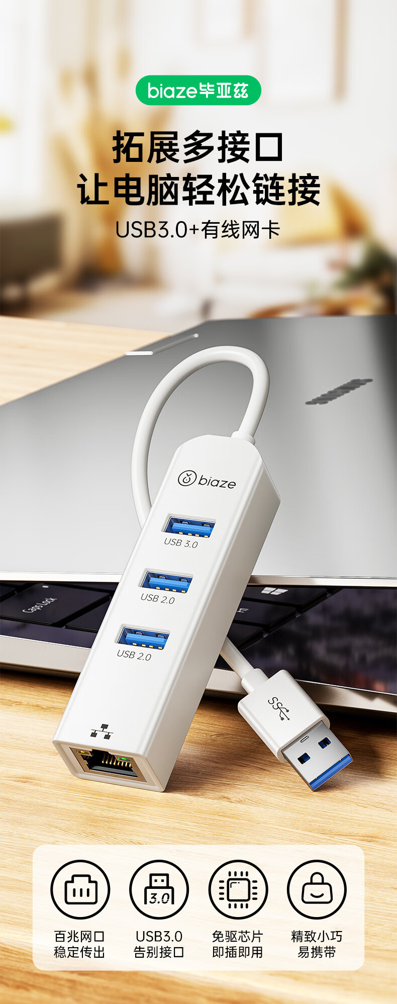 Biaz USB3.0-네트워크 포트 분할 라인 확장 RJ45 인터페이스 허브 컴퓨터 노트북 Win8/10 어댑터스토어 가기