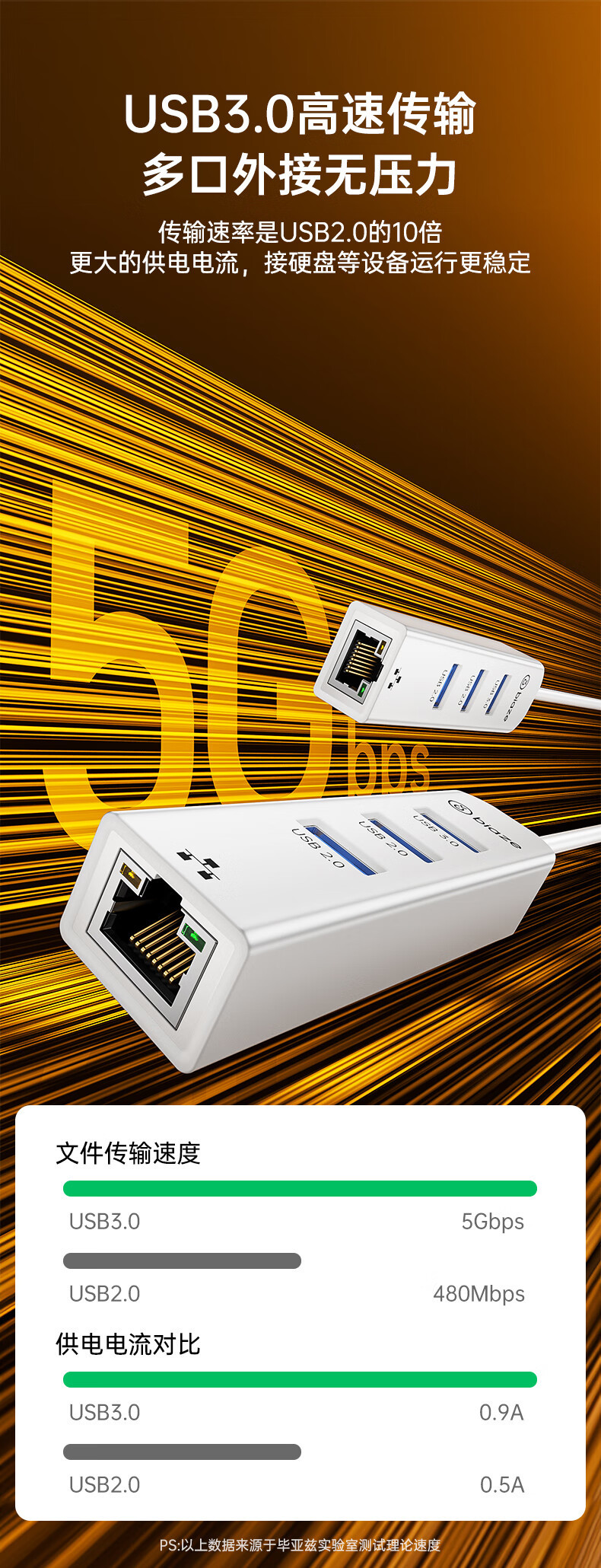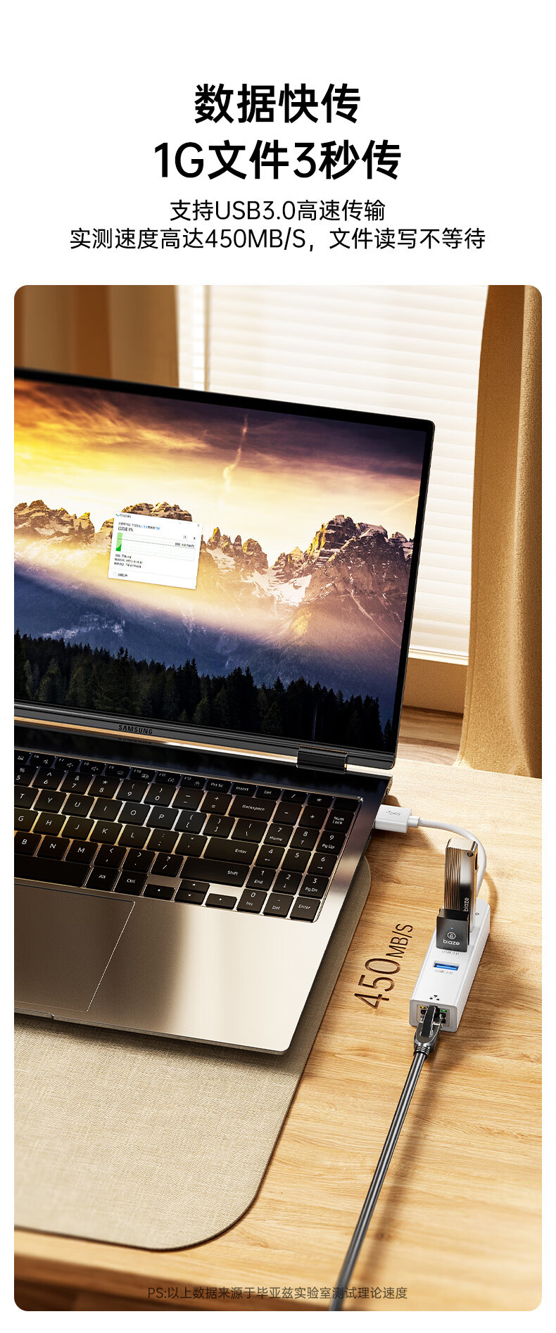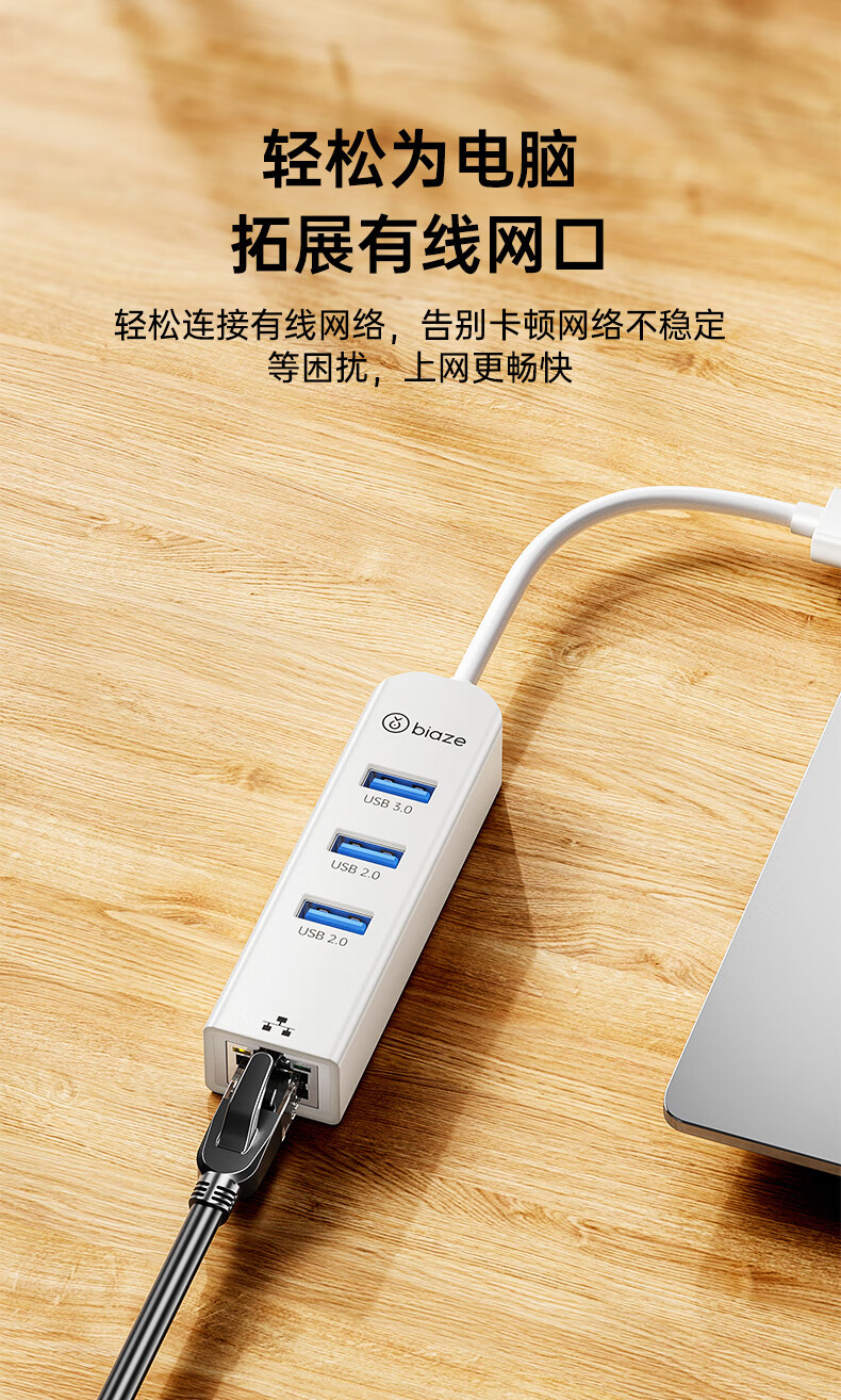 Biaz USB3.0-네트워크 포트 분할 라인 확장 RJ45 인터페이스 허브 컴퓨터 노트북 Win8/10 어댑터스토어 가기