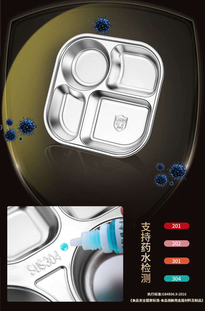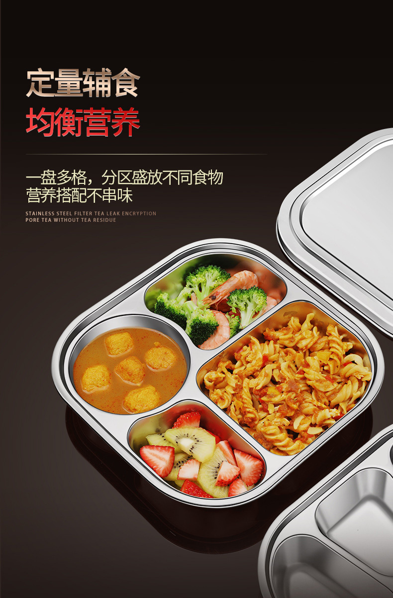 • 304 성인 사각형 얼굴 4 그리드 플레이트 304 강철 뚜껑 (젓가락과 숟가락 포함)