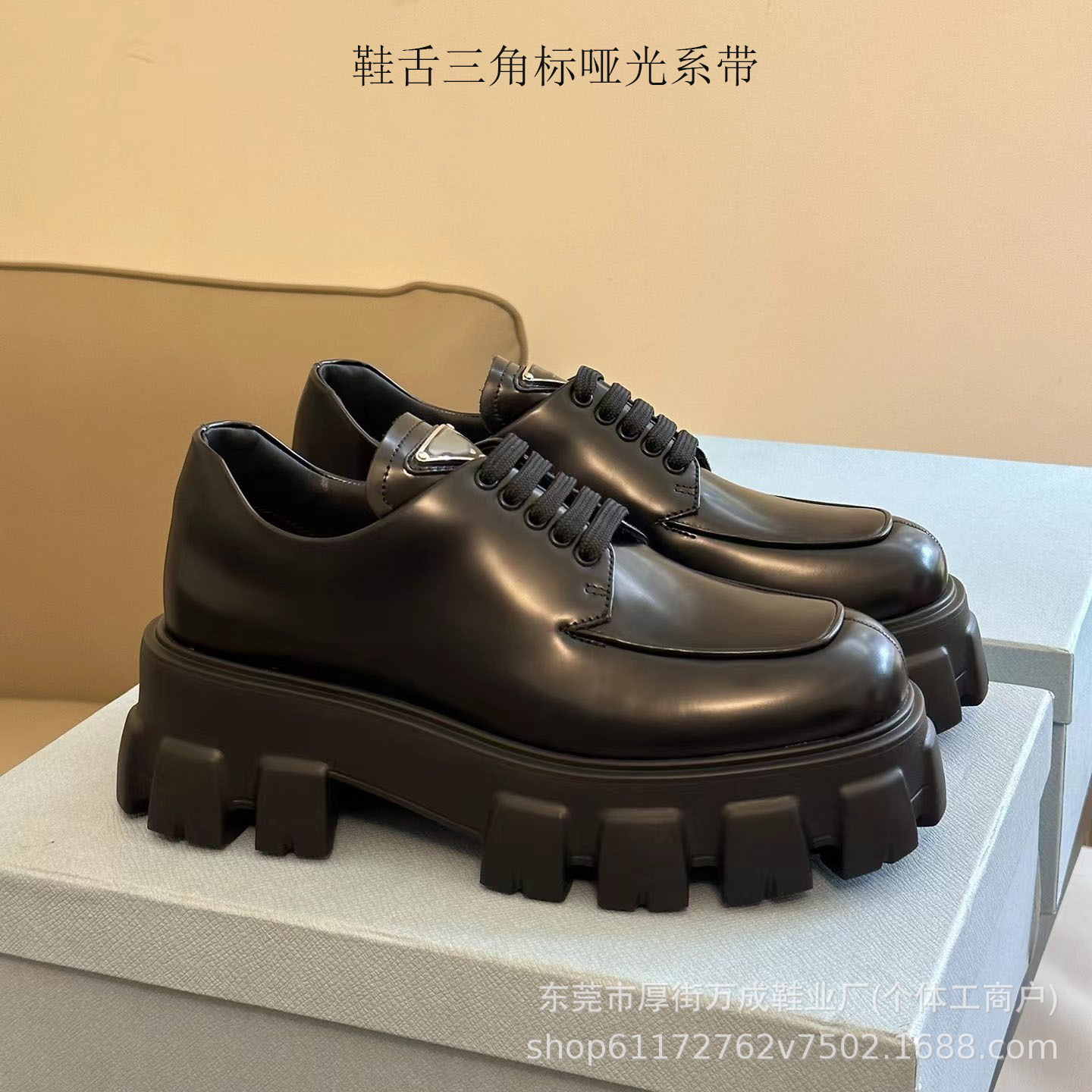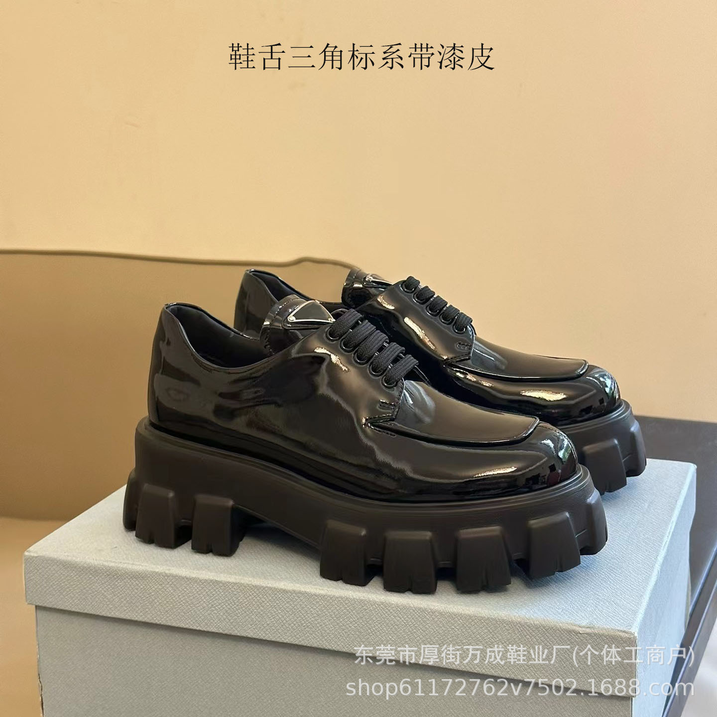 • 혀 삼각형 특허 가죽 레이스 업