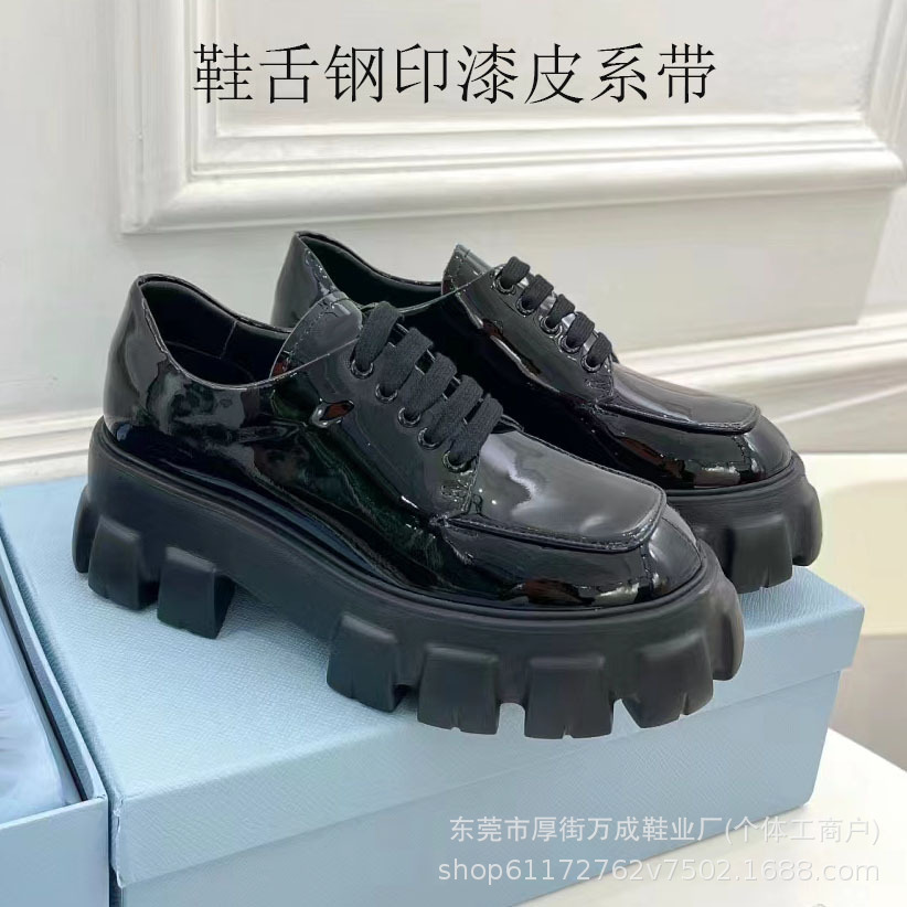 순수 오리지널 P 까르푸 신발 여성 삼각형 두꺼운 바닥 레이스 가죽 증가 여성 신발 동관 공장 아울렛스토어 가기