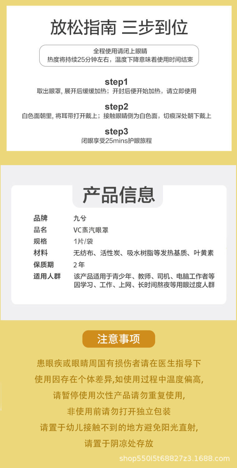 [공장 도매] vc 루테인 스팀 아이 마스크 눈의 피로를 완화하고 수면열이 쑥 눈 보호 패치를 적용스토어 가기
