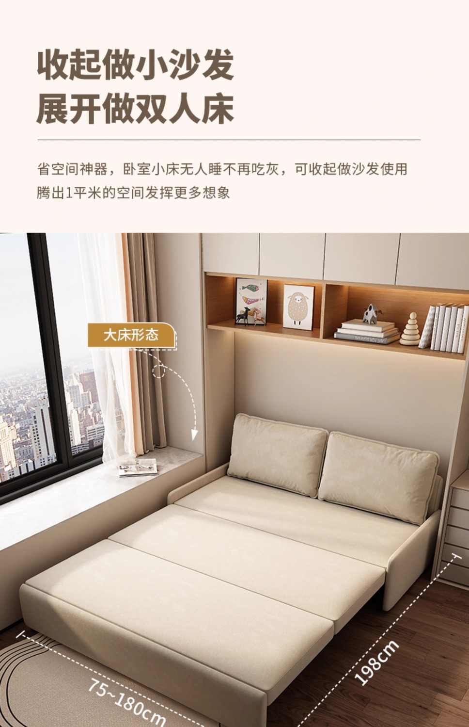 LW0 새로운 접이식 프로스트 천 간단한 거실 팔걸이 소파 침대 다기능 접이식 이중 목적 작은 아파트 책