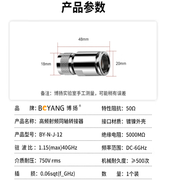 博扬 高频射频同轴转接器50欧 N型公头 L16连接器 N-C-J-12 匹配12D-FB线 1个装 BY-N-J-12*1 合格证*1