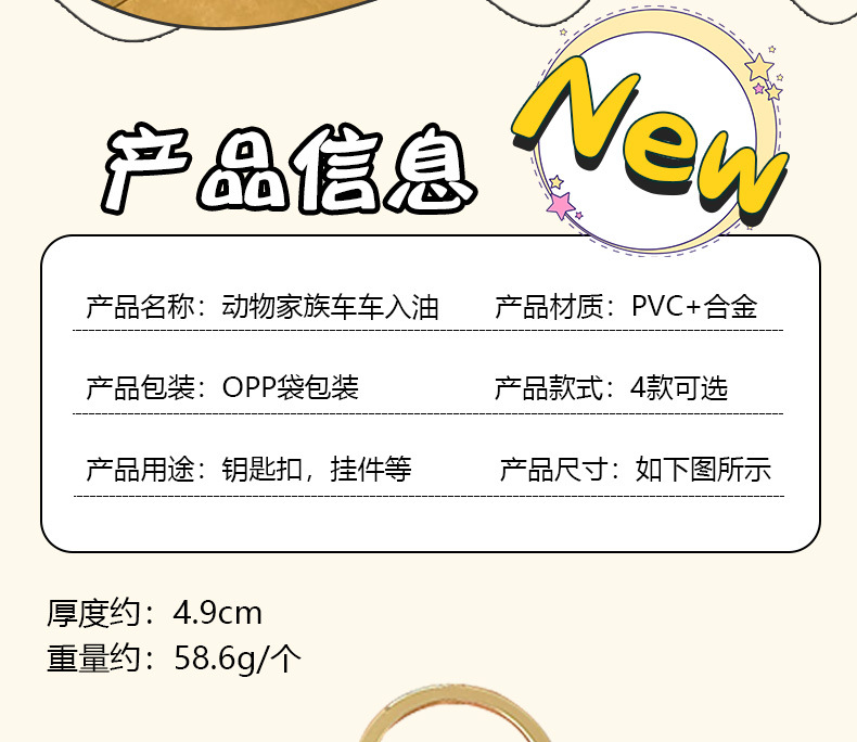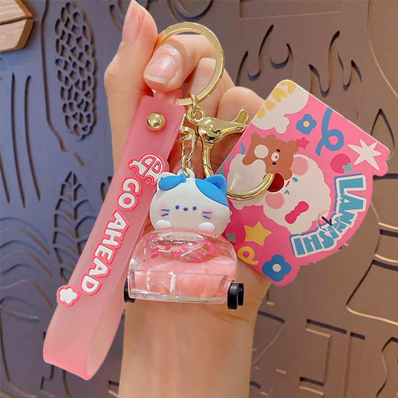창조적 인 귀여운 동물 가족 자동차 자동차 오일 키 체인 귀여운 학교 가방 펜던트 자동차 키 체인 선물 도매스토어 가기