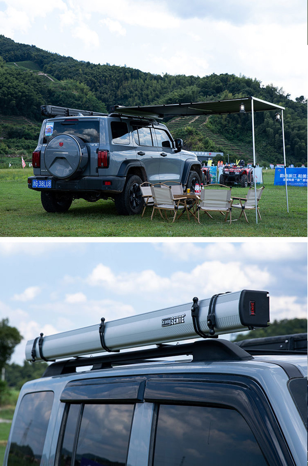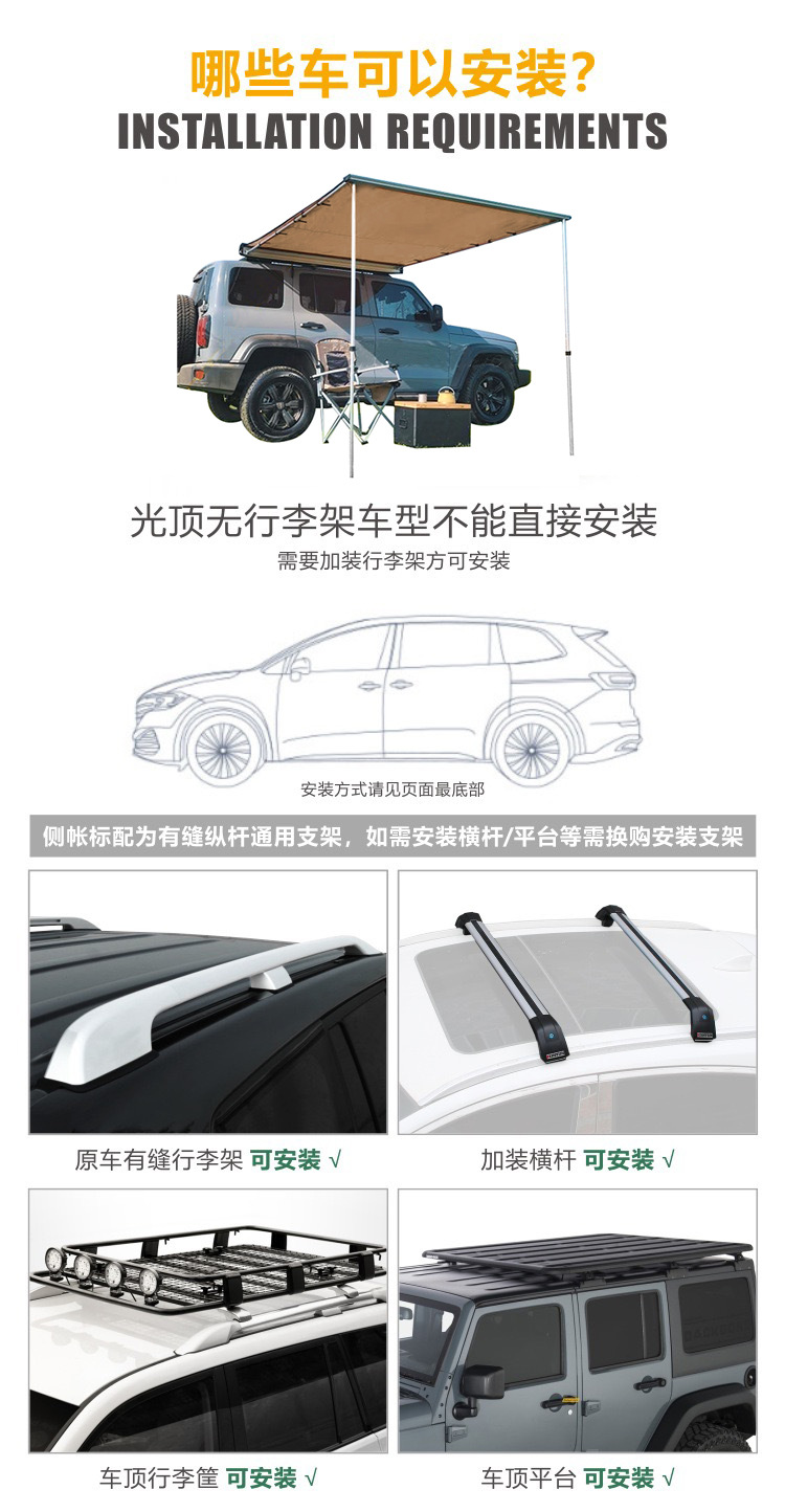 자동차 측면 텐트 알루미늄 합금 외피 야외 캠핑 차양막 차량용 블랙 글로시 측면 텐트스토어 가기