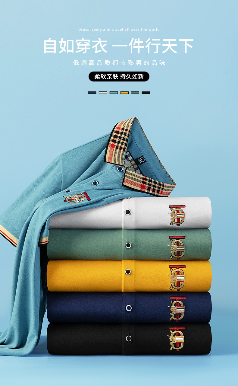 폴 뉴 여름 남자 반소매 라르 티셔츠 아이스 실크 폴로 셔츠 트렌디 브랜드 반소매 칼라 남성용 티셔츠스토어 가기